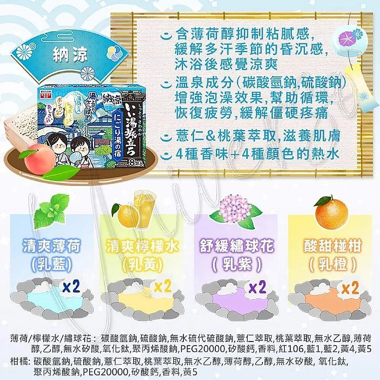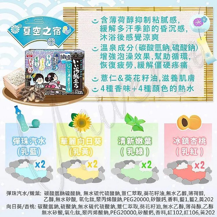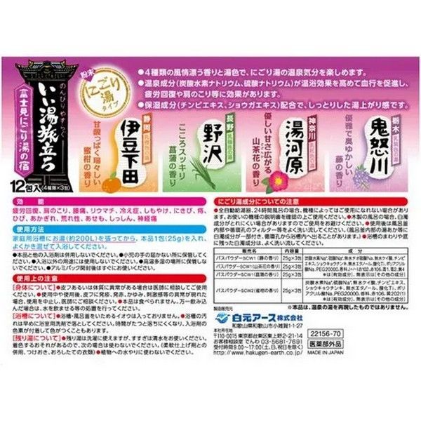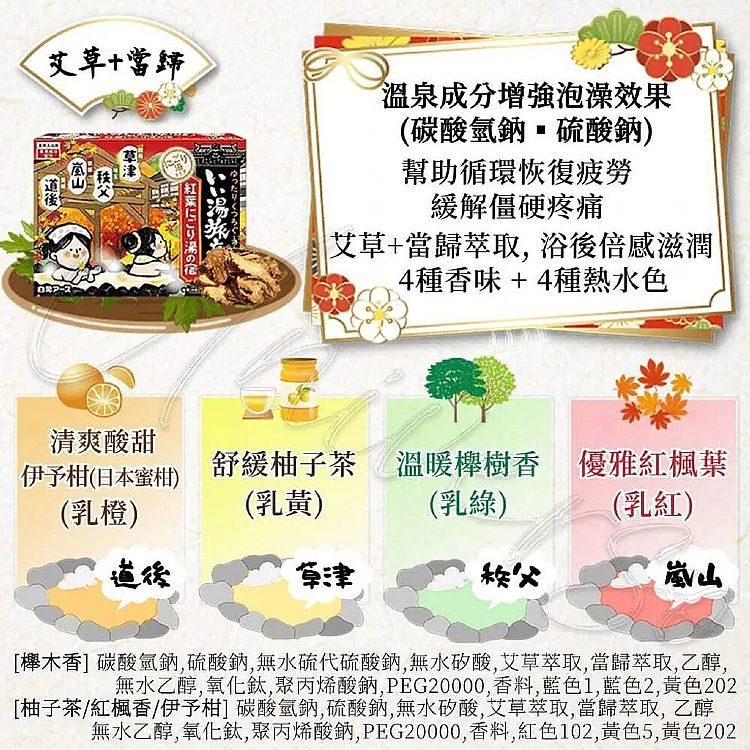 日本 白元 湯之巡旅泡澡粉(1盒裝)/好湯之旅碳酸泡澡錠(45gx12入) 入浴劑 泡澡【小三美日】DS010783 x12包(草津-秩父-嵐山-道後)紅|12包鬼怒川-湯河原-野沢-伊豆下田)紫|8入(納涼)|8入(夏空之宿)|12包(黑川/南紀勝浦/伊香保/秋保)藍|12包入(箱根/石和/萬座/銀山)粉|12包(別府/有馬/草津/登別)綠|12包(由布院/道後/箱根/藏王)橘|好湯之旅碳酸泡澡錠-大正浪漫45gx12|好湯之旅碳酸泡澡錠-昭和復古45gx12Others小三美日