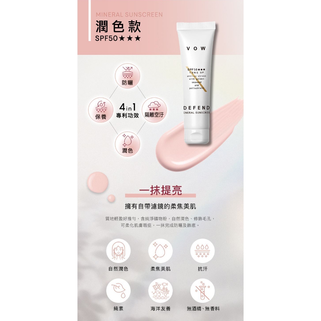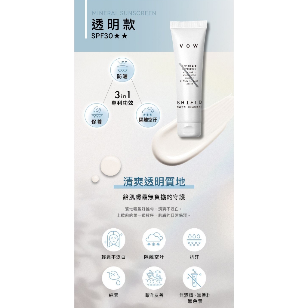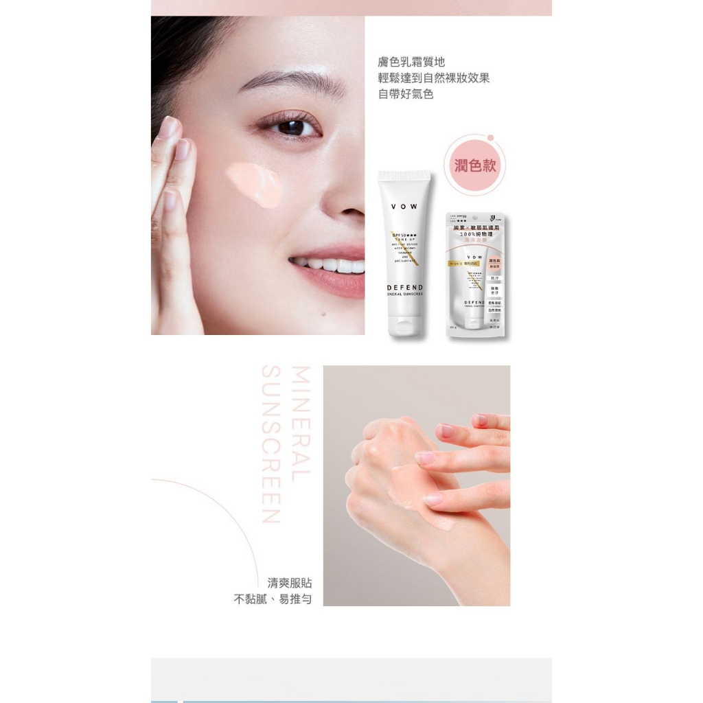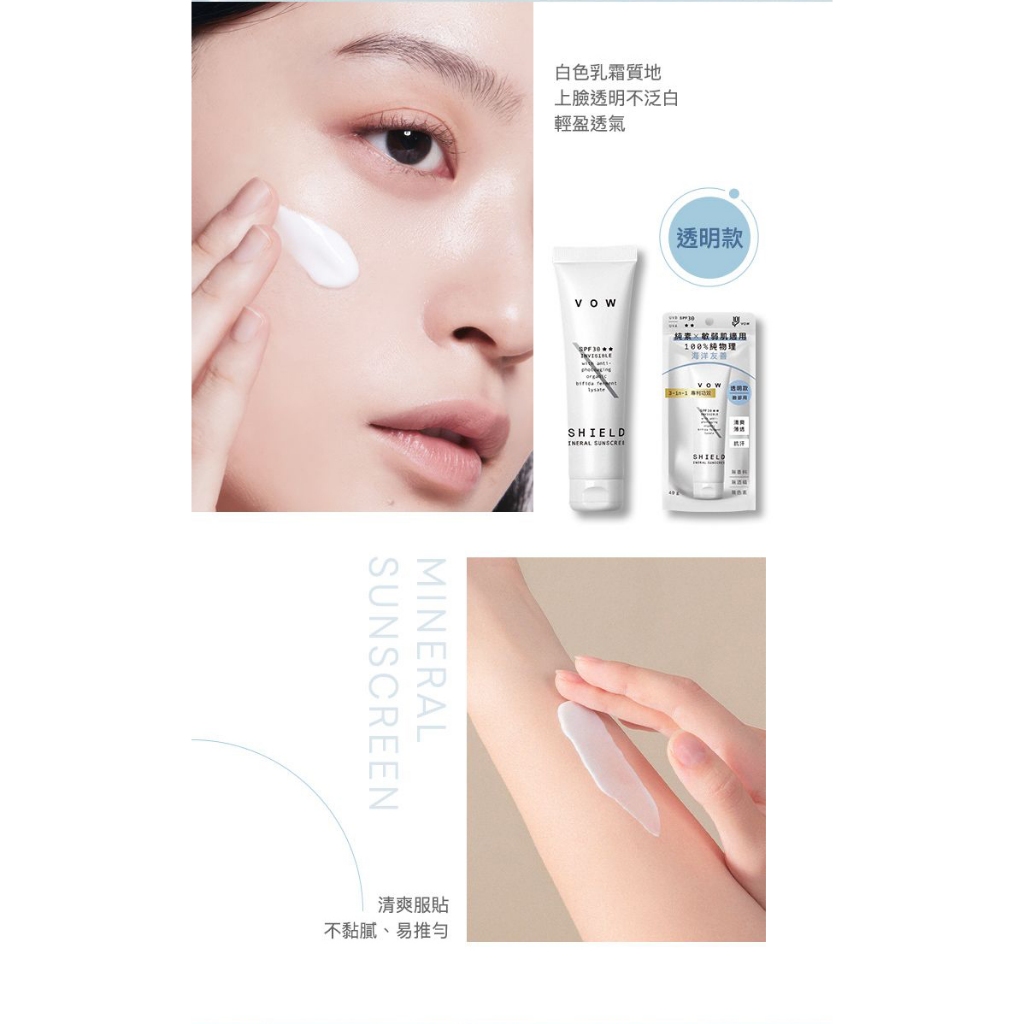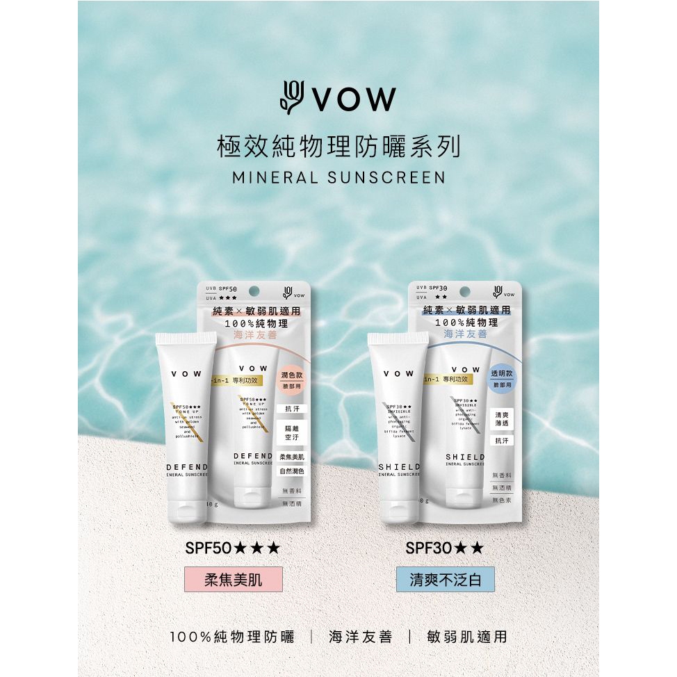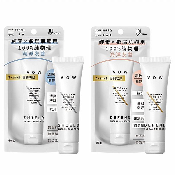 VOW 極效純物理防曬霜(40g) 款式可選 防曬乳 物理防曬 海洋友善 無酒精 敏弱肌【小三美日】DS021032透明|潤色Sun Care小三美日