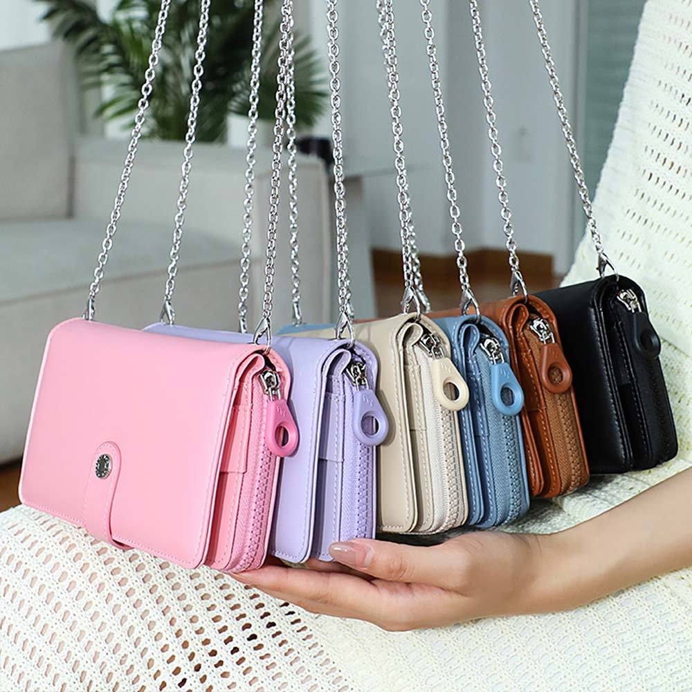 天藍小舖-多功能皮革手機長夾(附鍊條)-共6色-A08081858杏色|粉色|棕色|紫色|黑色|藍色Long Wallets天藍小舖 SkyBlue