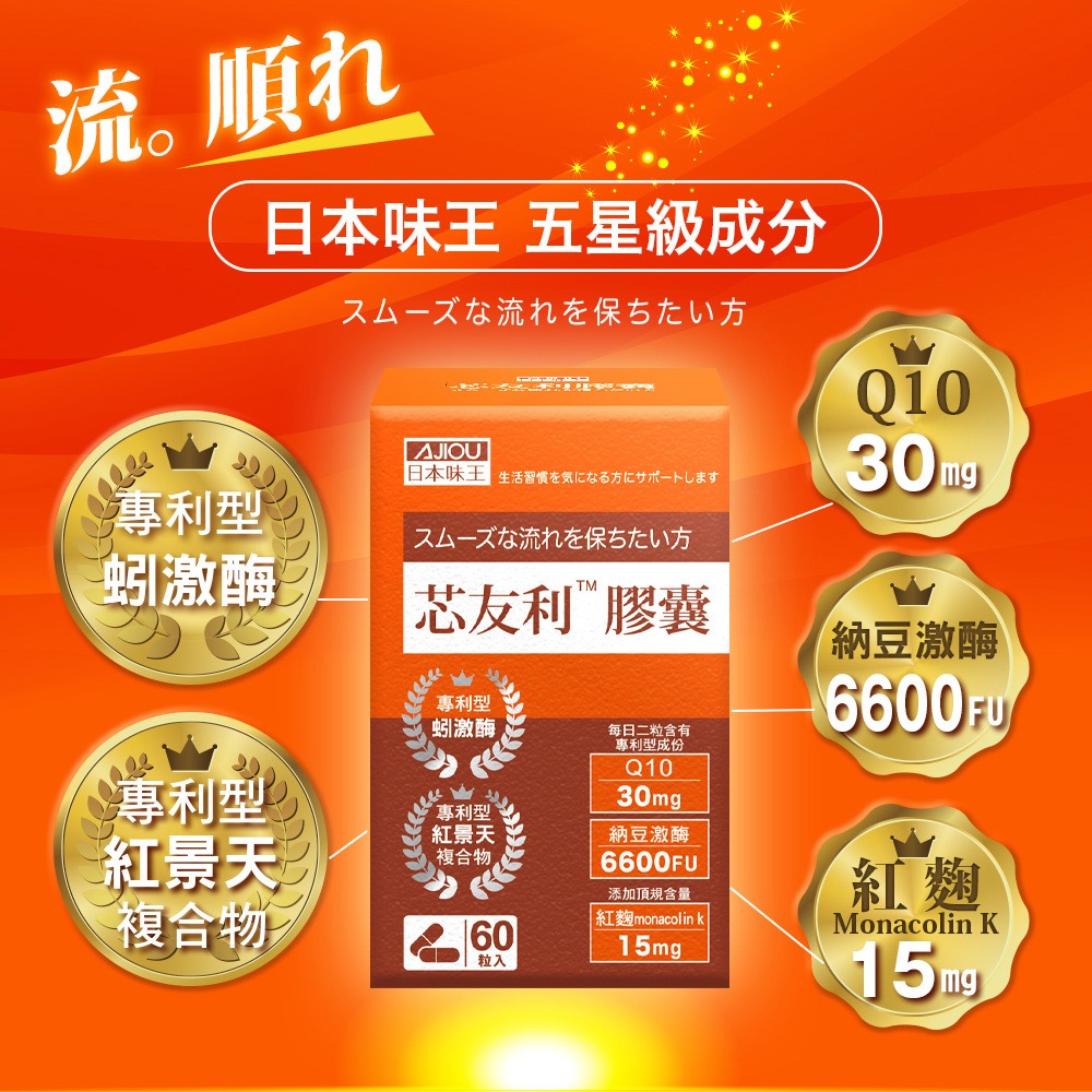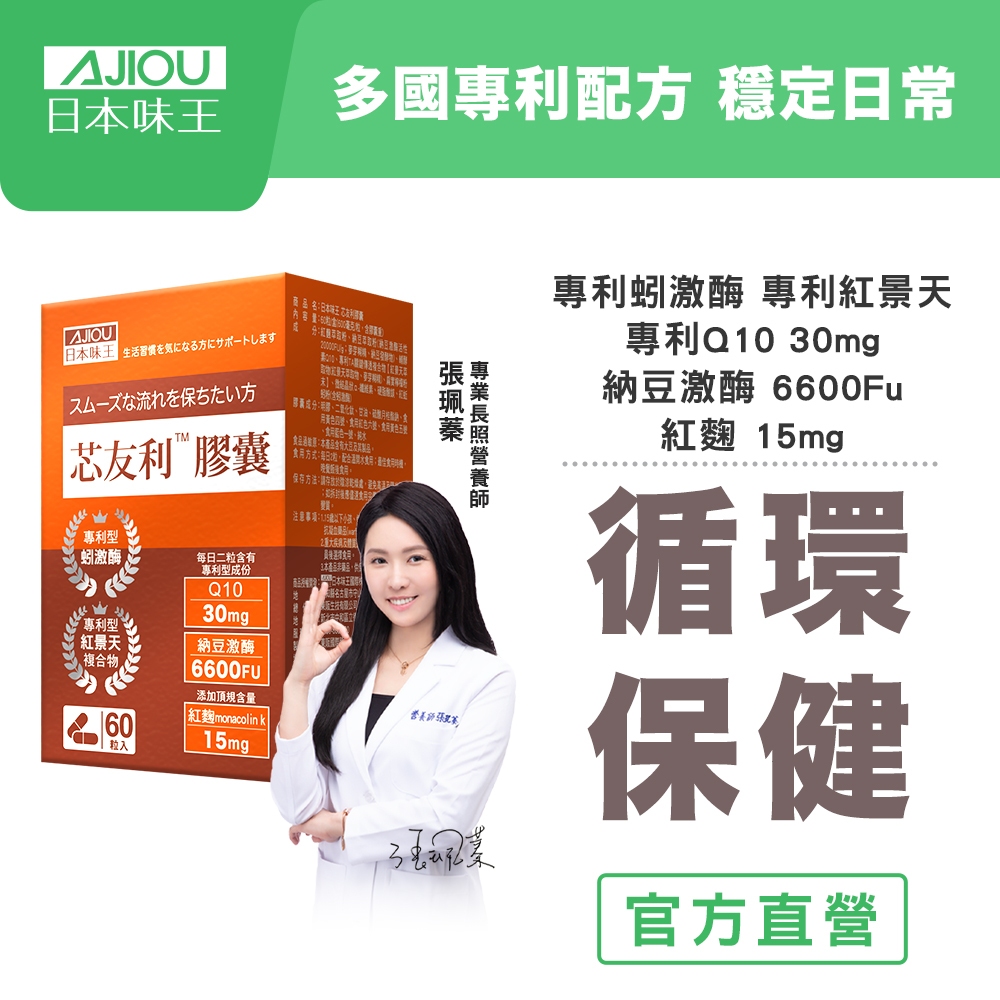 日本味王 芯友利膠囊60粒【官方直營店】(Q10/紅麴/納豆/紅景天/蚓激酶)1盒|2盒優惠價Well Being日本味王 官方旗艦店 |消化保健專家 |葉黃素一級棒