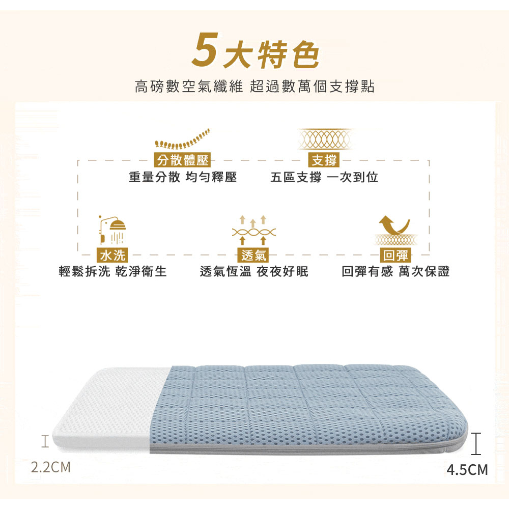 【日本旭川】伊正廣告款 AIRFit氧活力快速傳導石墨烯4.5cm空氣床墊 舒適支撐 可水洗 6D透氣循環單人加大|雙人|雙人加大Mattresses日本旭川|健康醫療睡眠館
