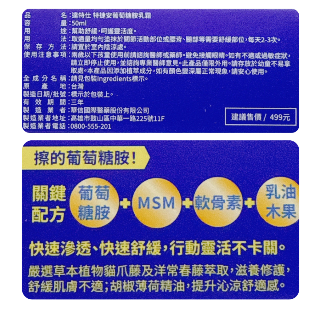 達特仕 特捷安葡萄糖胺乳霜50ml【仁仁藥局】葡萄糖胺乳霜 MSN特捷安葡萄糖胺乳霜50mlFacial Moisturizer仁仁藥局線上購物