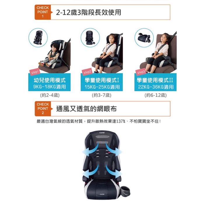 【Combi】Joytrip 18MC EG 汽車安全座椅|2-12歲|Egg Shock|汽座動感黑|跑格藍Car & Motorbike Seats日本Combi│REGASSA官方旗艦館