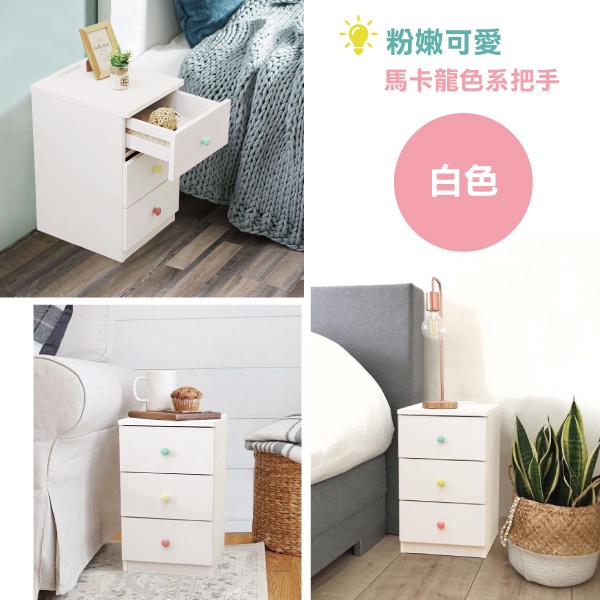 【天空樹生活館】日系三抽屜床頭櫃(大款) (附插座) 收納櫃 置物櫃 床邊櫃 矮櫃 邊櫃 隙縫櫃【台灣製】大三抽-白色+彩色把手|大三抽-原木色(停產)|大三抽-水泥灰|大三抽-白色+實木把手Storage Boxes, Bags & Baskets天空樹生活館-日系傢俱/生活小物