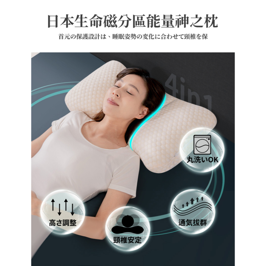 【日本旭川】生命磁分區能量神之枕 水洗枕 枕頭 機能枕 神之枕 中空管枕 電視熱銷1入|2入Pillows日本旭川|健康醫療睡眠館