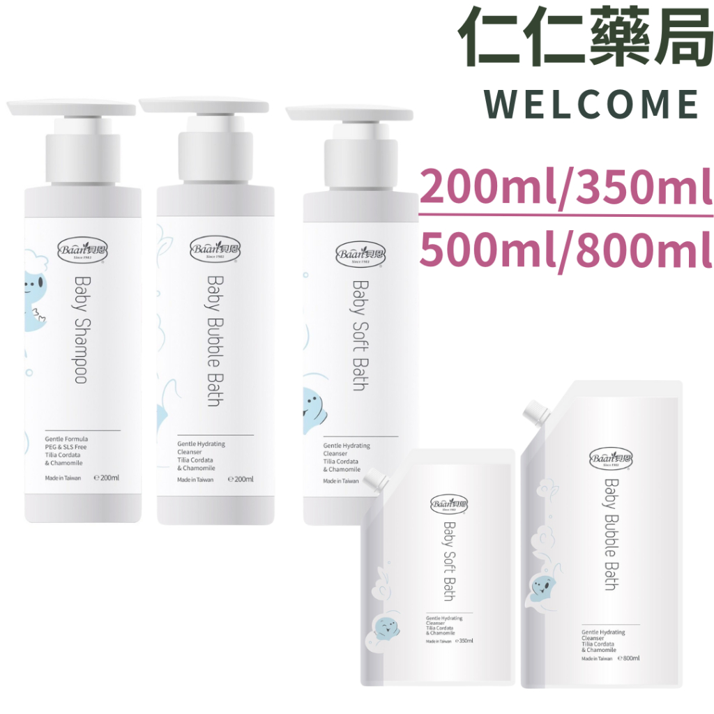 Baan貝恩 嬰兒洗髮精 嬰兒沐浴精 泡泡香浴露【仁仁藥局】補充包 兒童洗髮精 兒童沐浴乳 泡泡露嬰兒洗髮精200ml(新款)|嬰兒洗髮精補充包350ml(新款)|嬰兒沐浴精200ml(新款)|嬰兒沐浴精補充包350ml(新款)|嬰兒泡泡香浴露200ml(新款)|嬰兒泡泡香浴露500ml(新款)|嬰兒泡泡香浴露800ml補充包(新款)Hair Care & Body Wash仁仁藥局線上購物