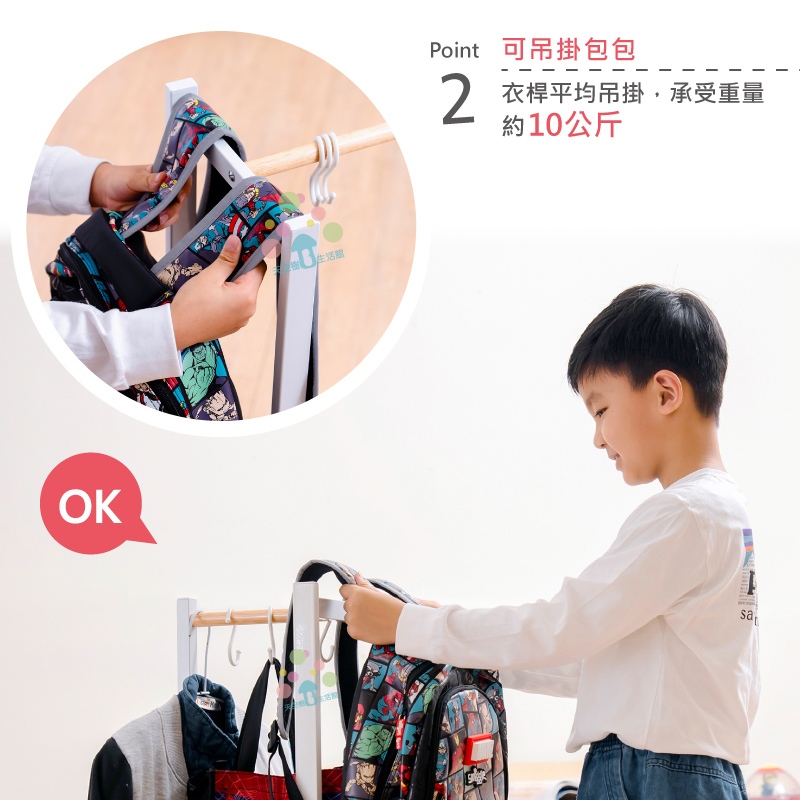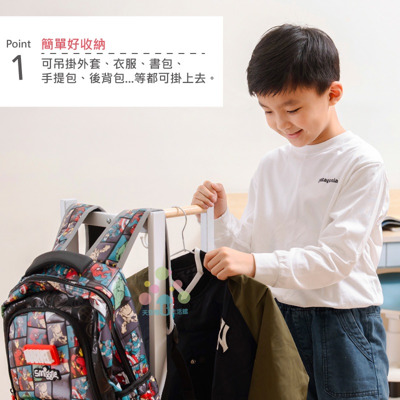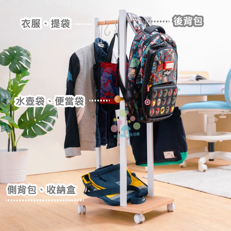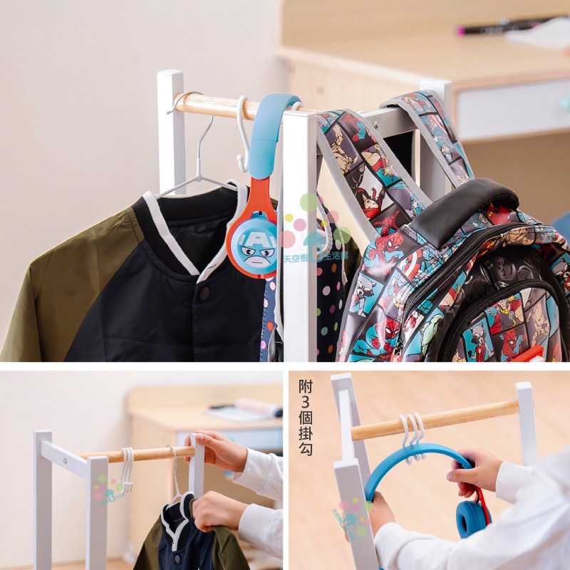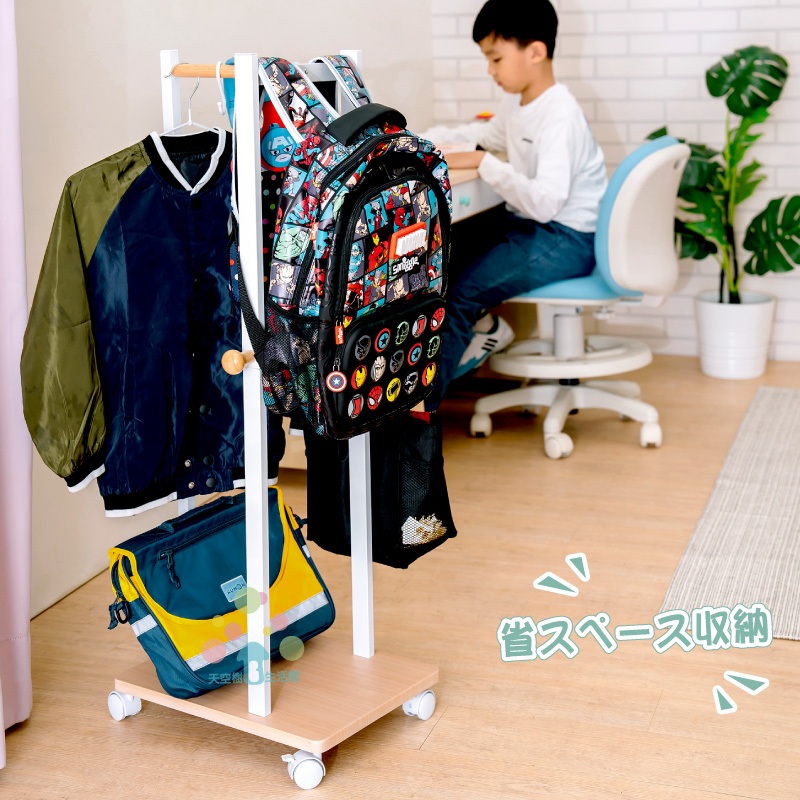 【天空樹生活館】無印風日系兒童吊衣書包架 吊衣架 衣帽架 收納架 掛衣架【台灣製】白色Shelves & Racks天空樹生活館-日系傢俱/生活小物