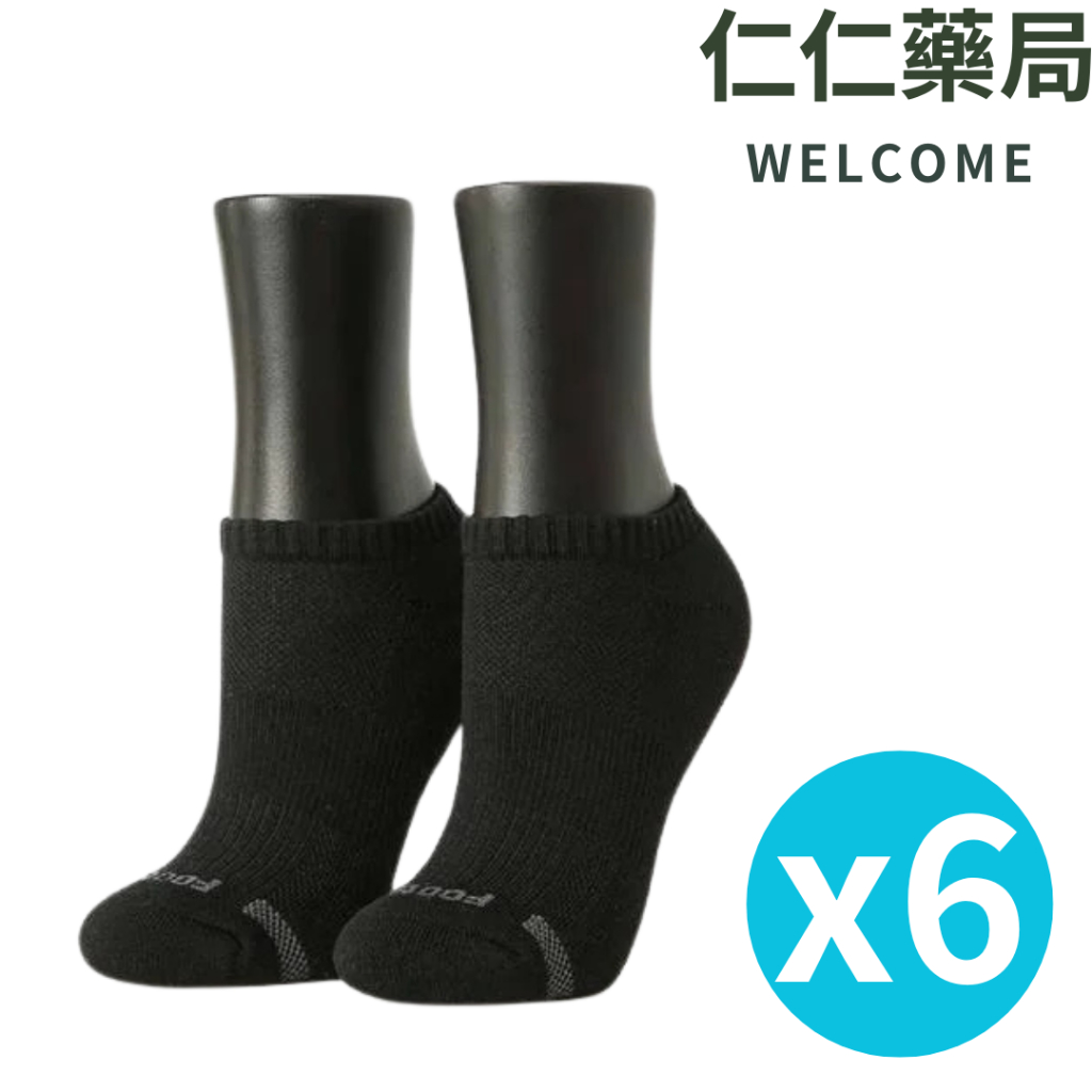 FOOTER 除臭襪 單色運動逆氣流氣墊船短襪 黑(六雙組) T31M22~25cm黑色六雙|L24~27cm黑色六雙仁仁藥局線上購物