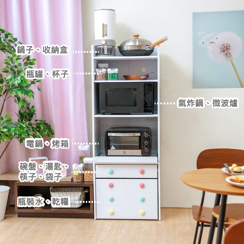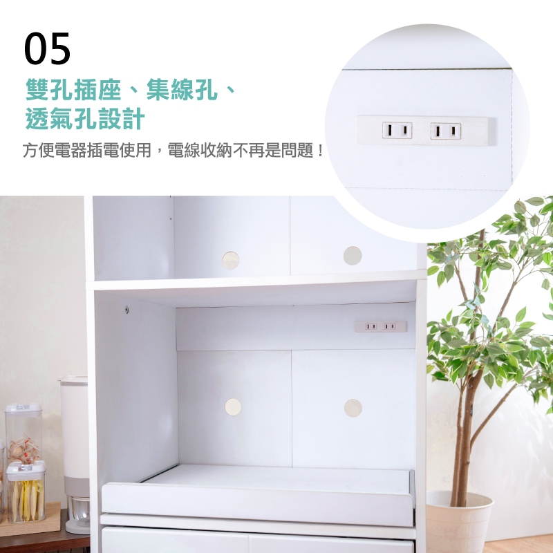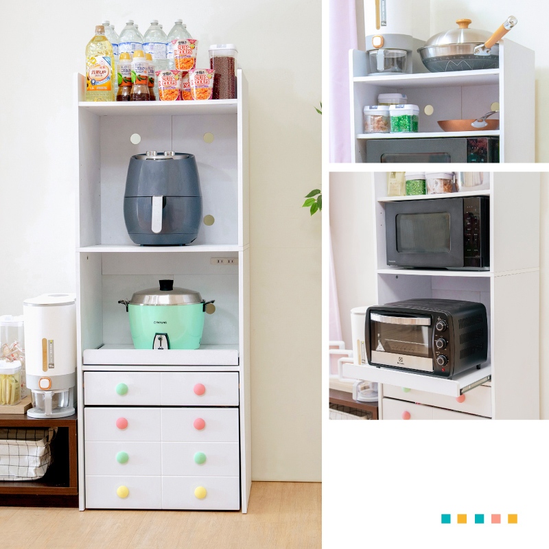 【天空樹生活館】馬卡龍廚房收納櫃(寬58公分-附插座) 收納櫃 櫥櫃 碗櫥櫃 廚櫃 電器櫃【台灣製】白色(寬58公分)Cupboards & Cabinets天空樹生活館-日系傢俱/生活小物