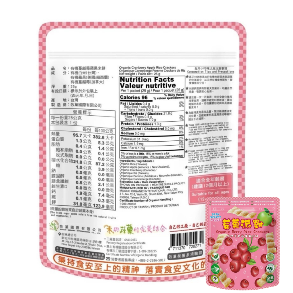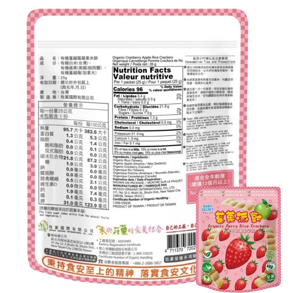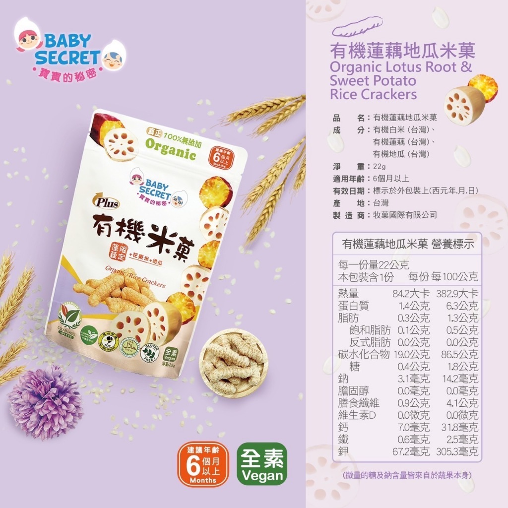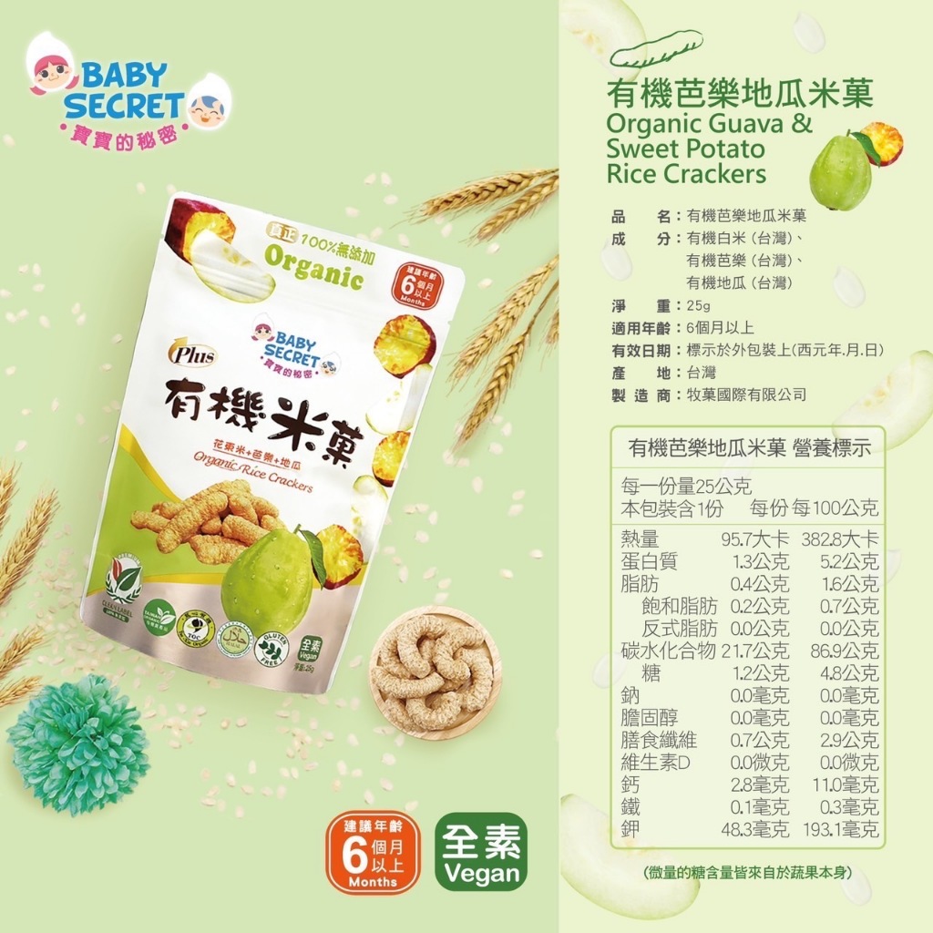 BABY SECRET 寶寶的秘密 有機米菓 米餅 【仁仁藥局】米餅蘋果地瓜米菓(6M以上)|蓮藕地瓜米菓(6M以上)|香蕉地瓜米菓(6M以上)|蕃茄胡蘿蔔米菓(6M以上)|有機芭樂地瓜米菓(6M以上)|地瓜米菓(4M以上)|芭樂米菓(4M以上)|南瓜米菓(4M以上)|紅豆米菓(4M以上)|紅藜米菓(4M以上)|胡蘿蔔米菓(4M以上)|香蕉米菓(4M以上)|菠菜米菓(4M以上)|蘋果米菓(4M以上)|藍莓米菓(4M以上)|有機草莓蘋果米餅(12M以上)|有機蔓越莓蘋果米餅(12M以上)|有機藍莓蘋果米餅(12M以上)Baby Snack仁仁藥局線上購物