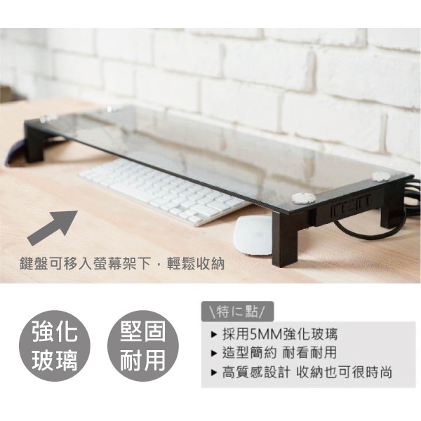 時尚多功能螢幕架(3孔2.0 USB+雙孔電源插座)/桌上架/置物架/收納架/置物櫃/8026G-M【天空樹生活館】胡桃木色|玻璃款Shelves & Racks天空樹生活館-日系傢俱/生活小物