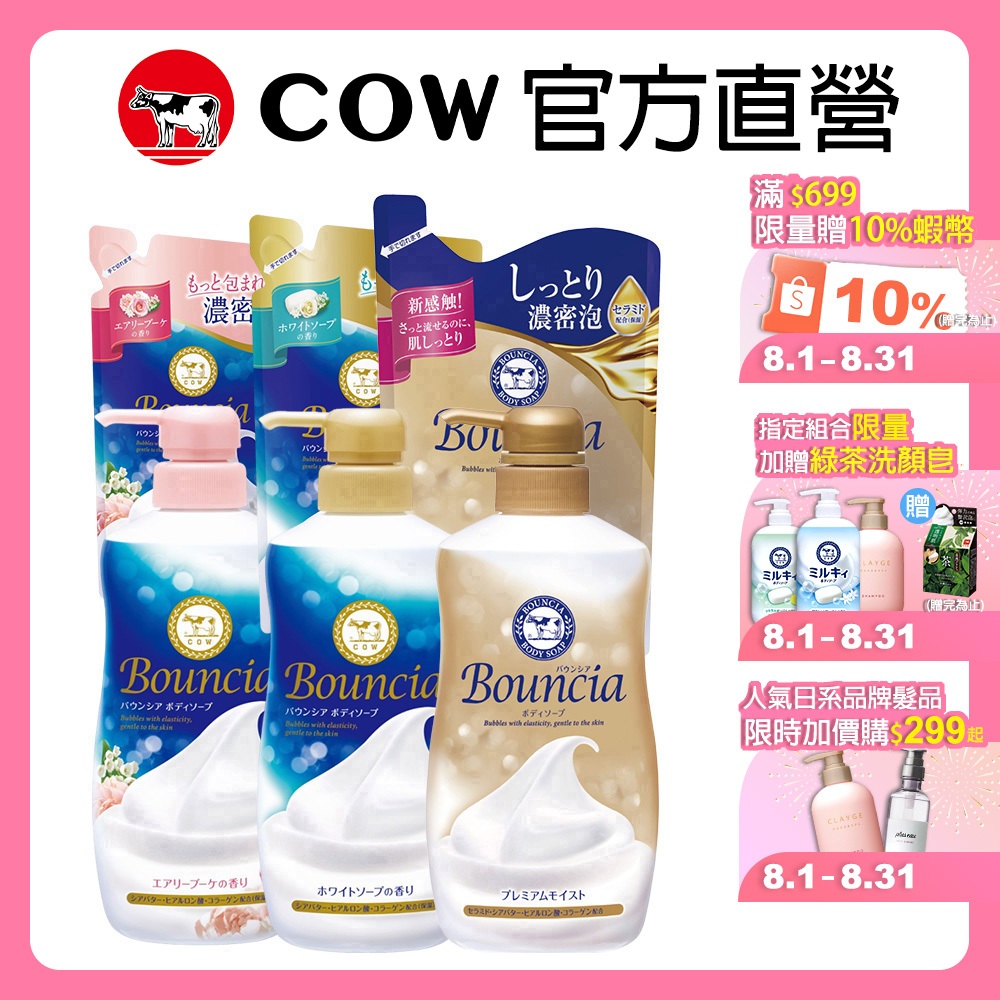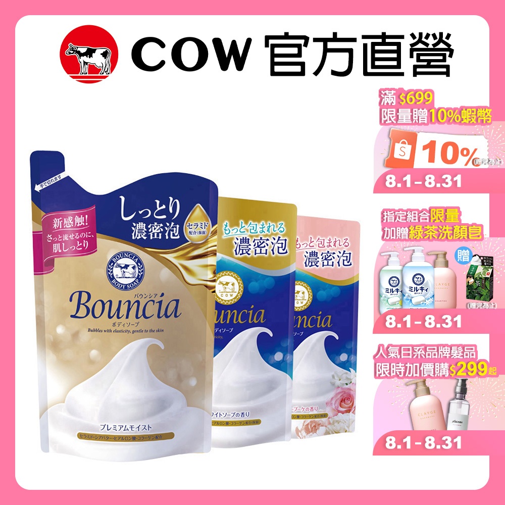 【日本牛乳石鹼】Bouncia自慢肌沐浴系列 | 官方旗艦店優雅花香罐裝 480ml|優雅花香補充包 360ml|愉悅花香罐裝 480ml|愉悅花香補充包 360ml|極致水潤罐裝 460ml|極致水潤補充包 340mlBody Wash & Soap日本牛乳石鹼官方旗艦店