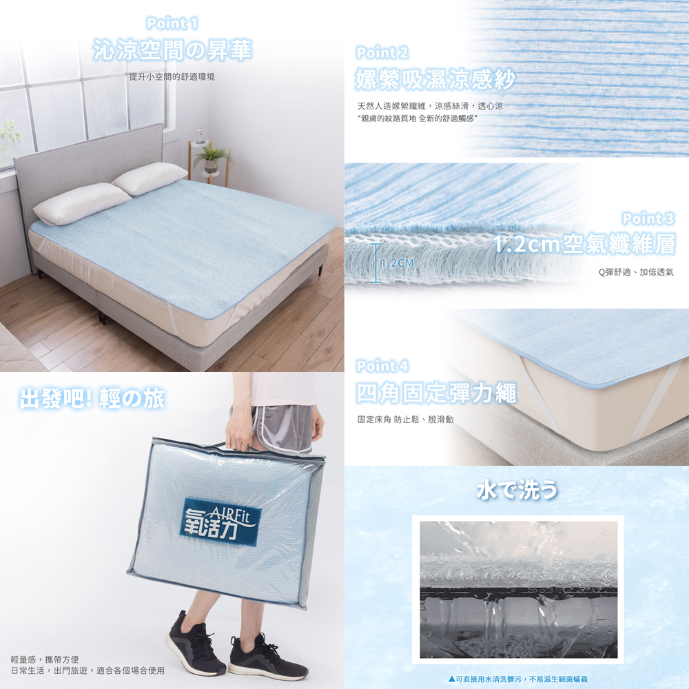 【日本旭川】AIRFit氧活力冰晶細條紋涼感空氣床墊 伊正推薦 1.2cm 涼墊 涼蓆 可水洗 6D透氣循環雙人(贈涼感坐墊x2)|雙人加大(贈涼感坐墊x2)|單人加大(贈涼感坐墊x1)Mattresses日本旭川|健康醫療睡眠館