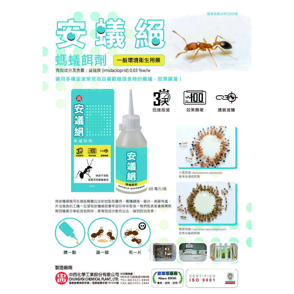 安蟻絕螞蟻餌劑 60ml 80g | 小黃家蟻 黑頭慌蟻 狂蟻 黑棘蟻 室內螞蟻 居家螞蟻 益達胺 中西化學 原廠公司貨安蟻絕螞蟻餌劑 60ml 80g | 小黃家蟻 黑頭慌蟻 狂蟻 黑棘蟻 室內螞蟻 居家螞蟻 益達胺 中西化學 原廠公司貨Pest & Weed Control中西化學 |環境用藥旗艦館