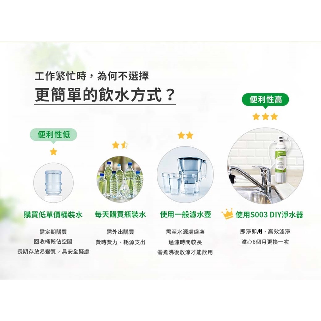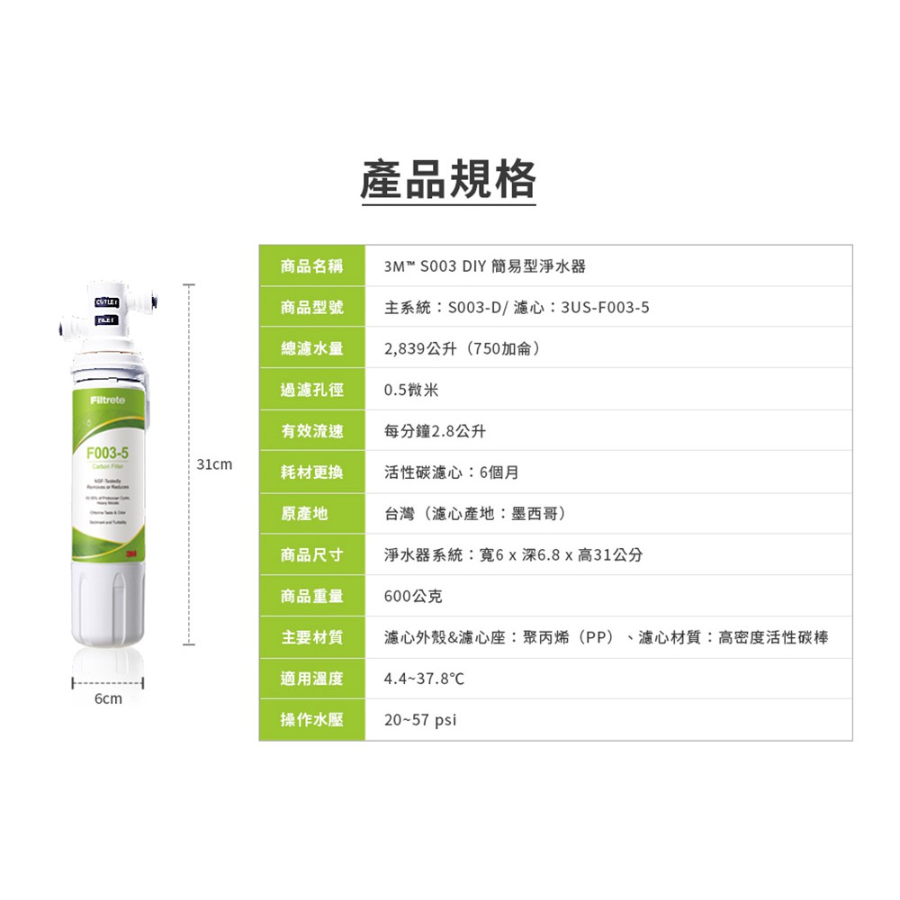 【3M】S003 DIY淨水組S003-D【濾效全新升級/美國NSF認證/內附安裝配件包|3M授權經銷】S003 DIY淨水器(一心一機)|3US-F003-5濾心一支(不含設備)|3US-F003-5濾心兩支(不含設備)Water Filters, Coolers & Dispensers天溢淨水館TENFULL|3M|BRITA|宮黛|櫻花Sakura|飛利浦