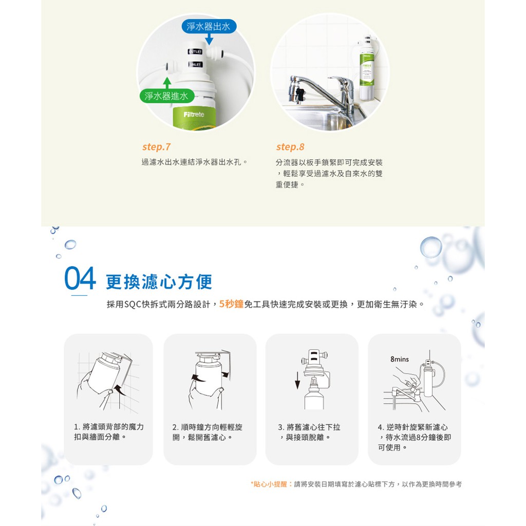 【3M】 3US-S008-5 淨水器替換濾心3US-F008-5一支 + 3RS-F001-5 前置PP濾心一支F008濾心|F008濾心+PP濾心一入Water Filters, Coolers & Dispensers天溢淨水館TENFULL|3M|BRITA|宮黛|櫻花Sakura|飛利浦