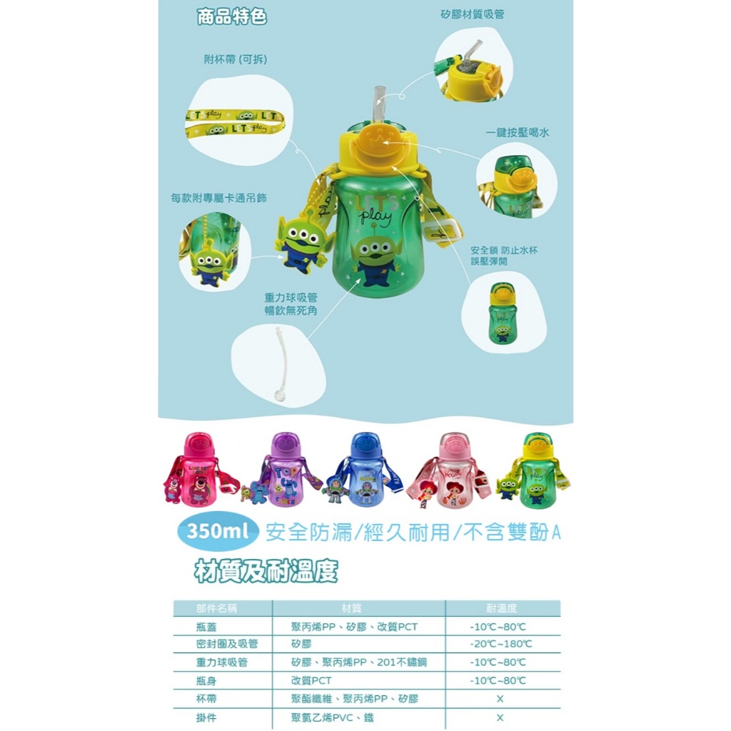 Jolly玩具總動員系列夏季水瓶350ml|夏季水瓶|水杯|水壺|吸管水瓶|吸管水壺|練習杯【六甲媽咪】替換吸管|毛怪&大眼仔-紫色|三眼怪-綠色|巴斯光年-藍色|熊抱哥-桃紅|翠絲-粉色Utensils六甲媽咪親子生活館