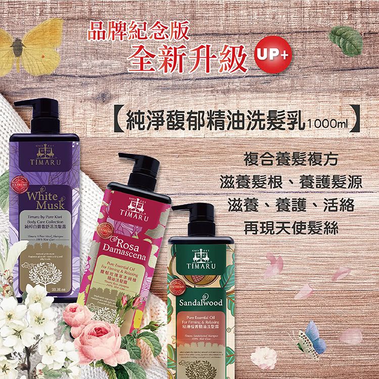 Timaru 堤瑪露 洗髮露(1000ml) 黑方瓶升級版 【小三美日】 DS009739純粹白麝香舒活|馥郁玫瑰草本純植精油|秘煉檀香精油Shampoo小三美日