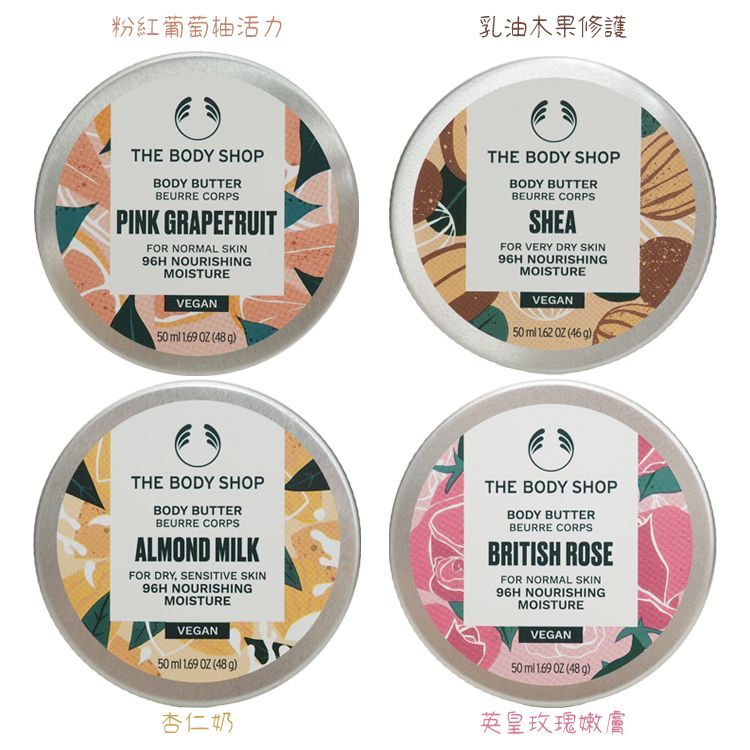 THE BODY SHOP 美體小舖 身體滋養霜(50ml) 款式可選 乳霜 保水 修護滋養【小三美日】DS024604杏仁奶|英皇玫瑰嫩膚|粉紅葡萄柚活力|乳油木果修護Facial Moisturizer小三美日