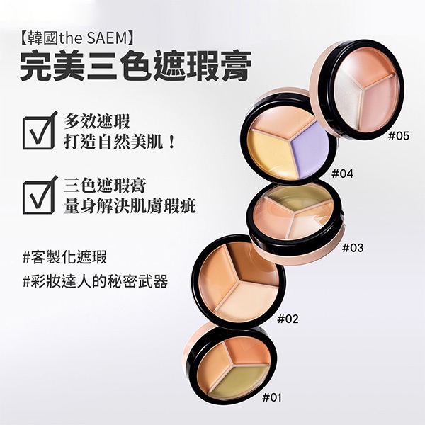 韓國 the SAEM 得鮮 完美三色遮瑕膏(1入) 款式可選 遮蓋斑點 遮蓋痘痘 校色服貼【小三美日】DS01697602-米黃色.高光.修容|03-淺米.淺綠.校正|04-冷米.黃色.紫色|01-米色.綠色.米粉色|05-珠光.淺粉.淺桃米Face小三美日