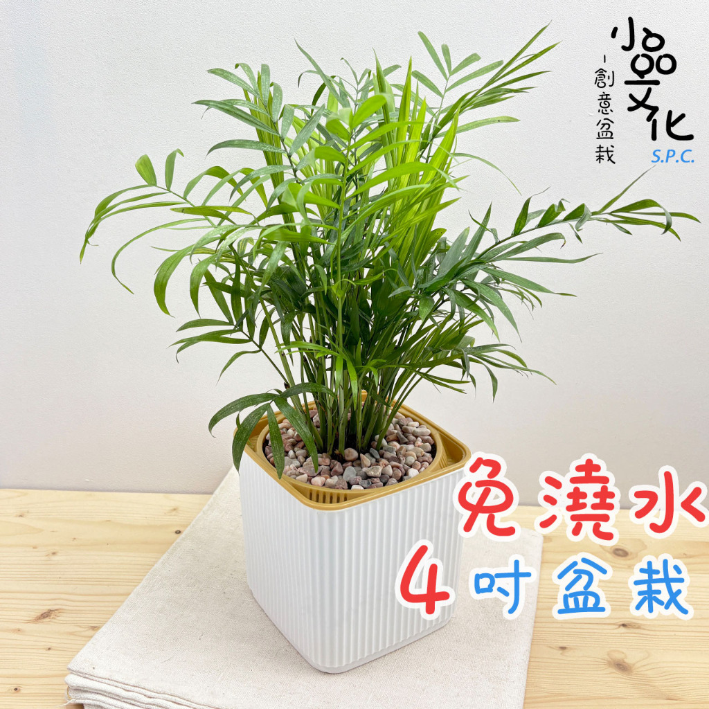 【小品文化】袖珍椰子【現貨】4吋四方免澆水盆栽 室內植物 室內盆栽 懶人盆栽 水培植物 水培盆栽 室內盆栽 觀葉植物袖珍椰子+四方盆Plants小品文化-免澆水盆栽