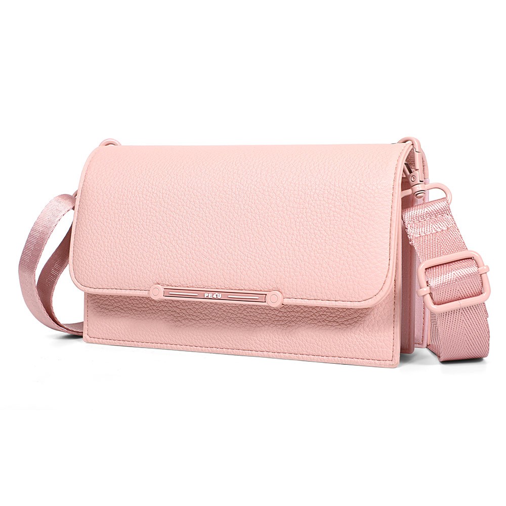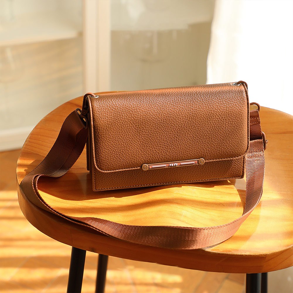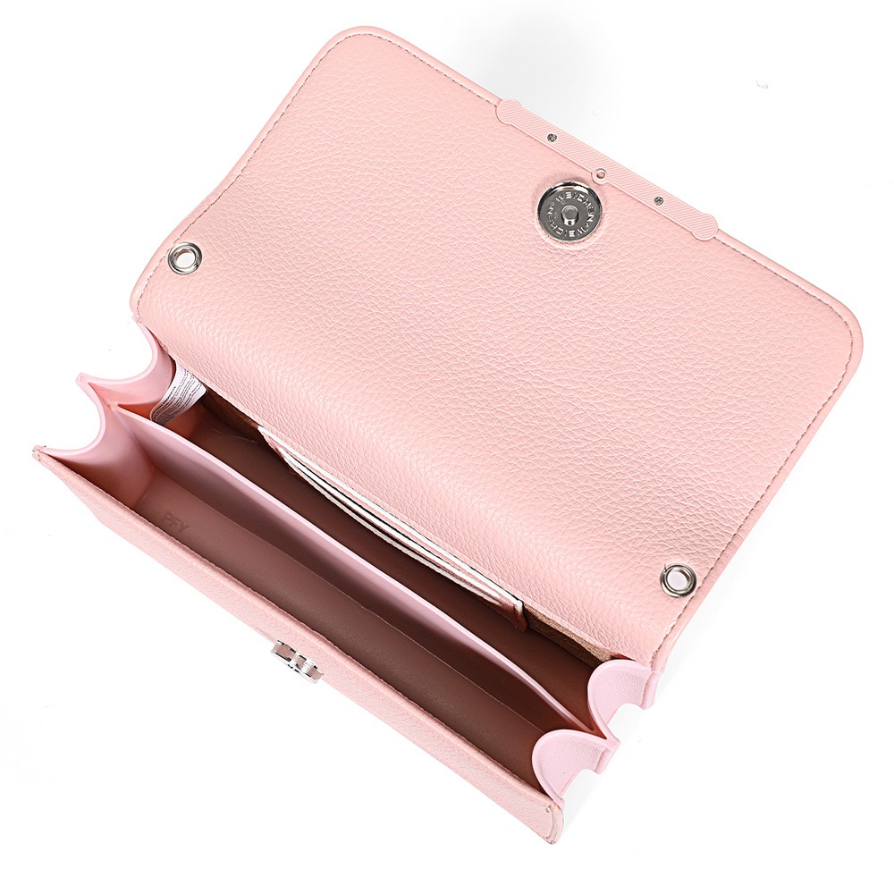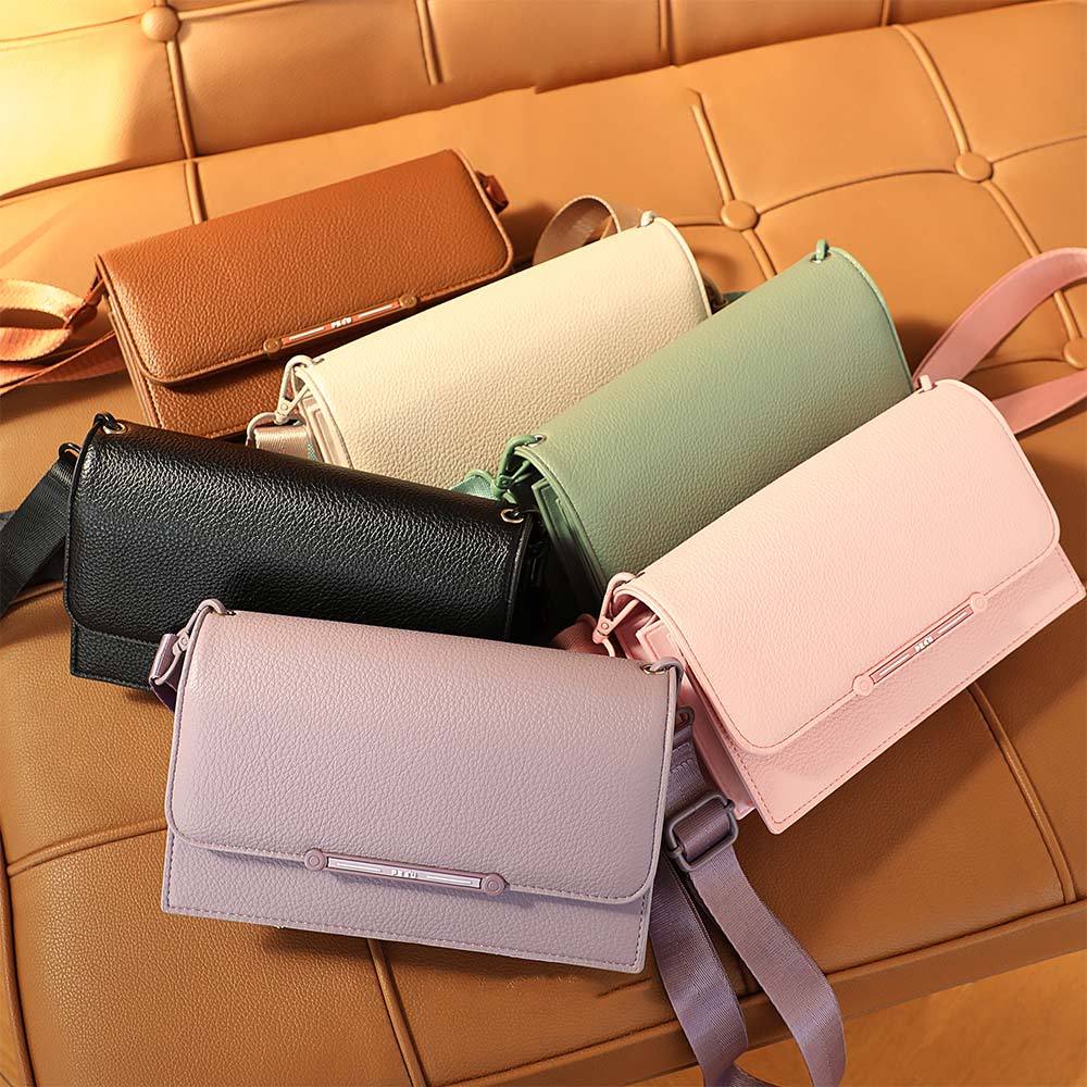 天藍小舖-翻蓋荔枝紋雙層斜背方包-共6色-A17175102杏色|淺粉|棕色|紫色|黑色|綠色天藍小舖 SkyBlue
