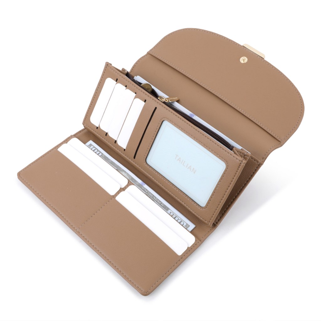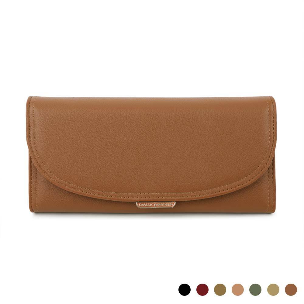 天藍小舖-簡約風格弧形皮革長夾-共7色-A08081830綠色|卡其|杏色|紅色|粉色|棕色|黑色Long Wallets天藍小舖 SkyBlue