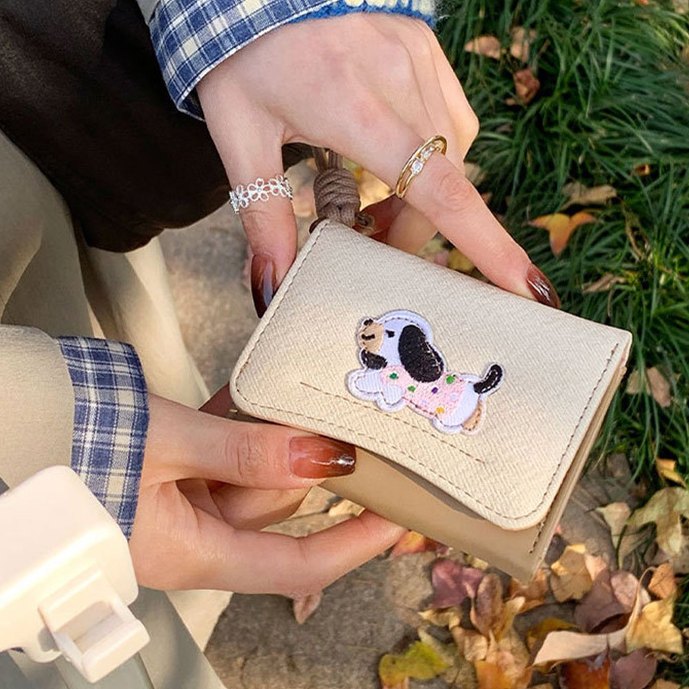 天藍小舖-刺繡可愛狗狗掛繩短夾-共5色-A08081837粉色|淺綠|淺藍|黑色|白色Bifold & Trifold Wallets天藍小舖 SkyBlue