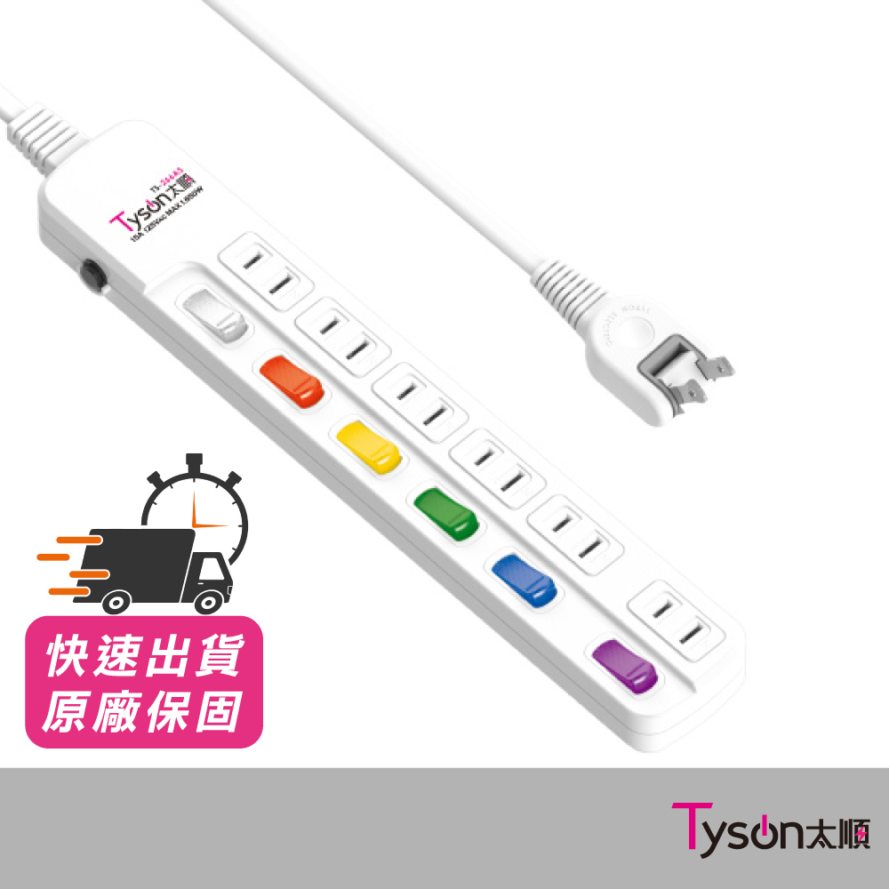 太順電業延長線 266AS 2孔6開6插 延長線插座 2.7M/3.6M/4.5M 扁頭延長線1.8m(180公分)|2.7m(270公分)|4.5m(450公分)|3.6M(360公分)Electric Sockets & Extension Cords太順延長線品牌旗艦館