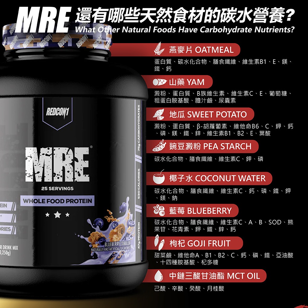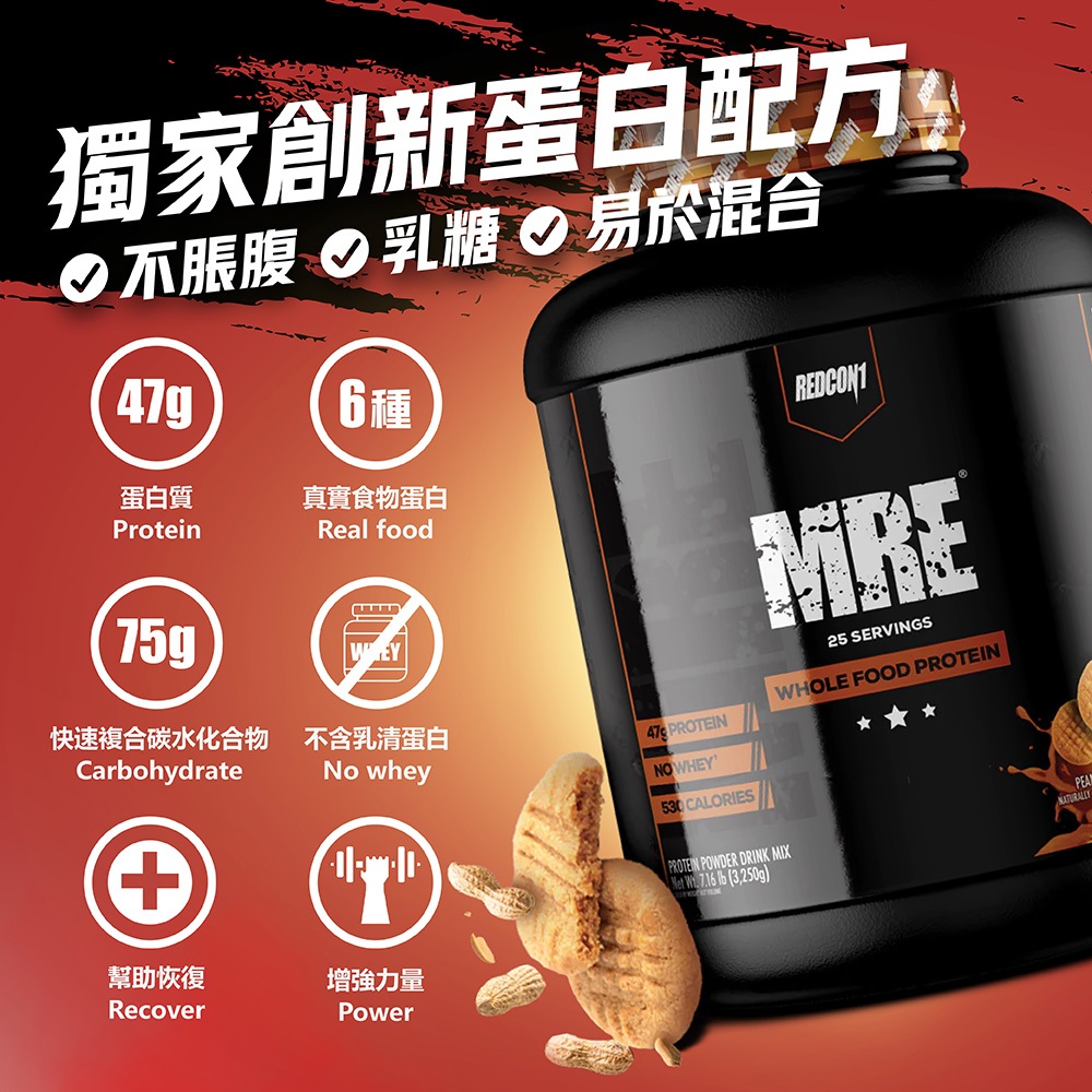 [美國 REDCON1] MRE真實食物高能量蛋白粉 高熱量Weight Gainer Mass RC1MRE 真實食物高能量蛋白粉-花生醬餅乾|MRE 真實食物高能量蛋白粉-草莓蛋糕|MRE 真實食物高能量蛋白粉-香草奶昔|MRE 真實食物高能量蛋白粉-藍莓餡餅|MRE 真實食物高能量蛋白粉-軟糖布朗尼|MRE 真實食物高能量蛋白粉-燕麥巧克力Fitness巴弟商城 BUDDYMART-運動營養 | 健身器材 | 護具裝備 | 搖杯配件
