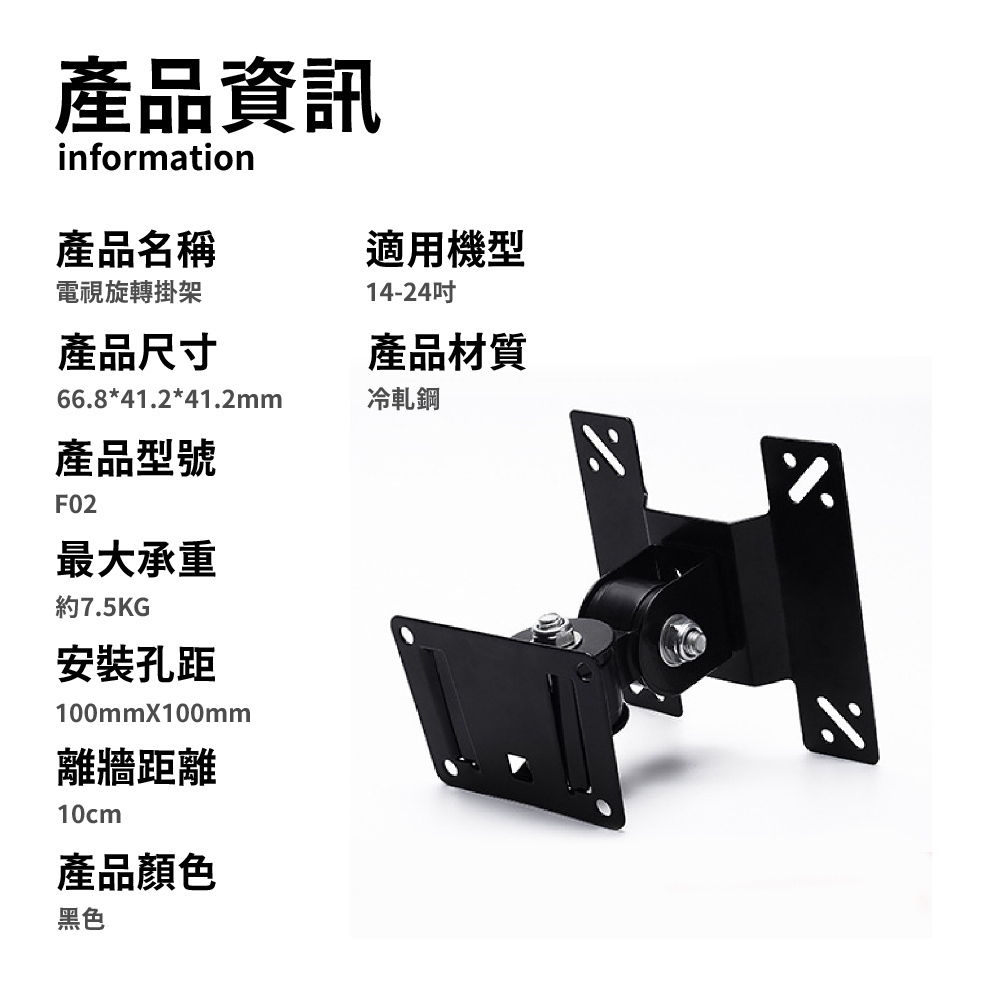 【JPB】雙軸可旋轉電視壁掛架 14-24吋 液晶電視掛架【JPB】雙軸可旋轉電視壁掛架 14-24吋 液晶電視掛架TV Brackets日本橋資訊廣場