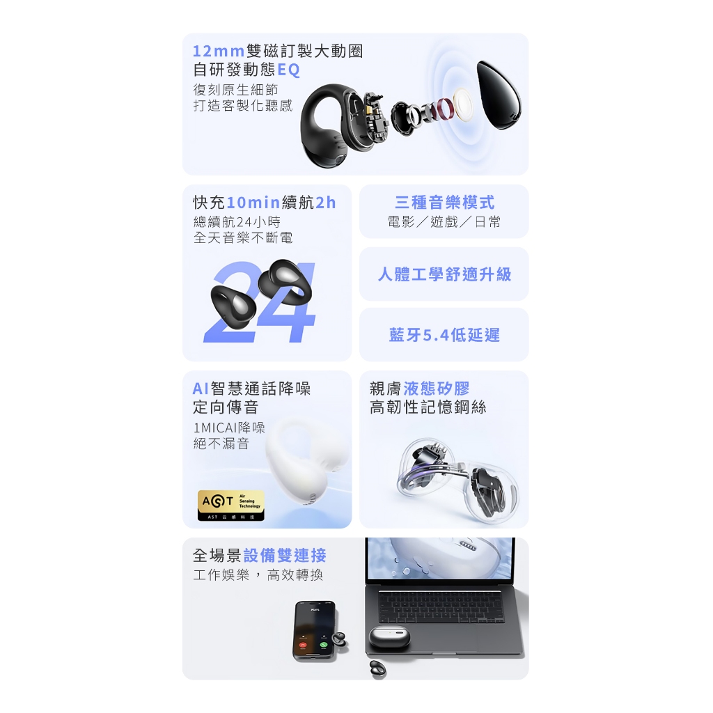 送收納包【SoundPeats】CC pro 珍珠耳夾式藍牙耳機公司貨 舒適輕盈 防水防塵 藍牙5.4 Ai降噪現貨 米色|送收納包|現貨 紫色|送收納包|現貨 黑色|送收納包|現貨 白色|送收納包日本橋資訊廣場