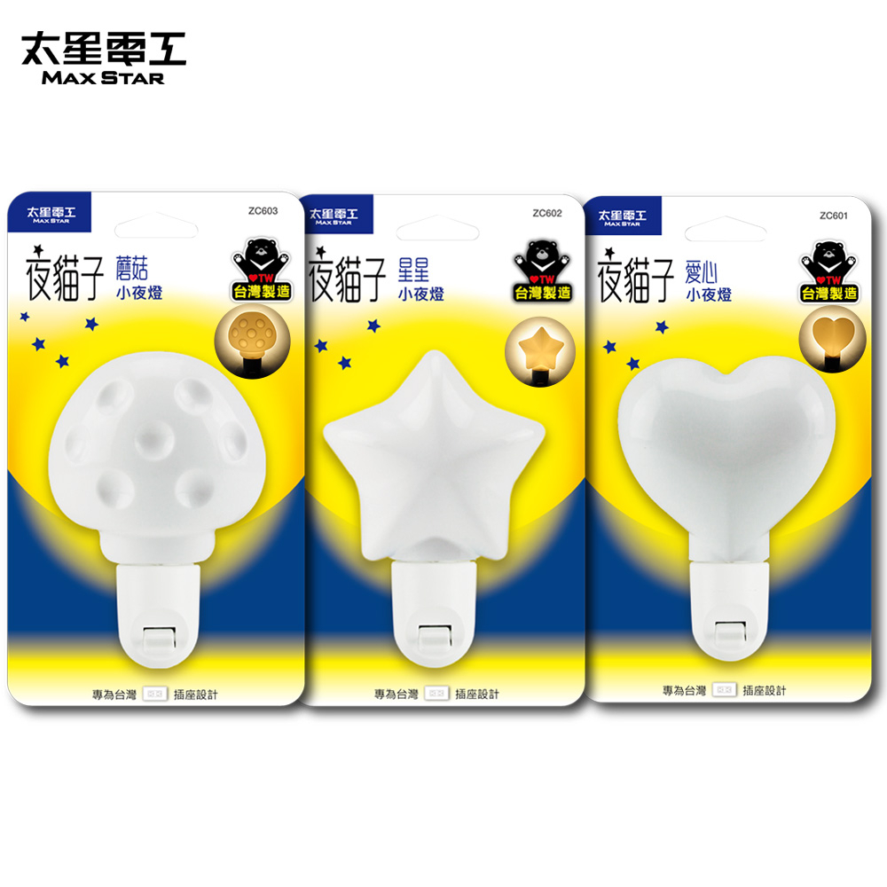 【太星電工】夜貓子小夜燈(愛心/星星/魔菇) ZC601/ZC602/ZC603魔菇|愛心|星星太星旗艦店