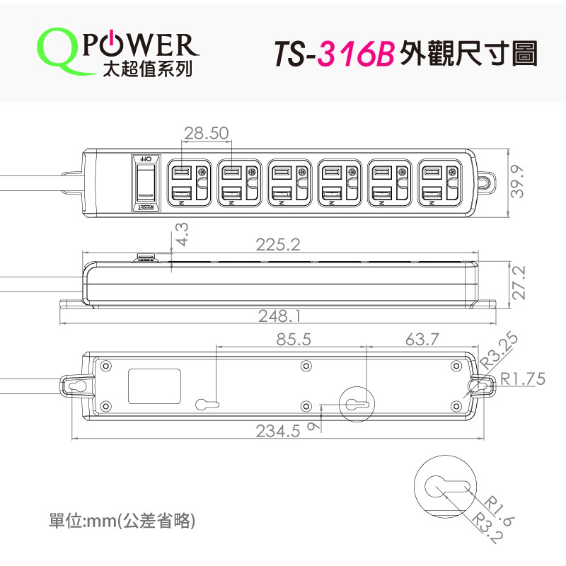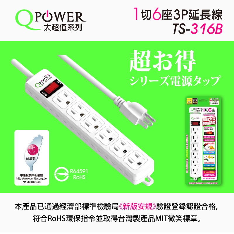 太順電業 TS-316B 3孔1開6插延長線插座1.8M-2.7M 3孔延長線 延長線插座 延長線1.2M(120公分)|1.8M(180公分)|2.7M(270公分)Electric Sockets & Extension Cords太順延長線品牌旗艦館
