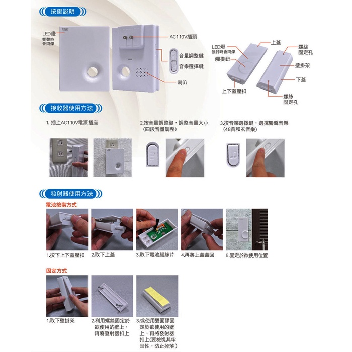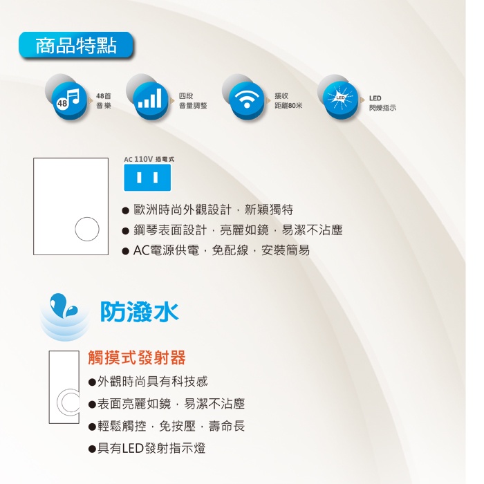 【太星電工】SKANDIA 時尚無線音樂門鈴/插電式 DR558W