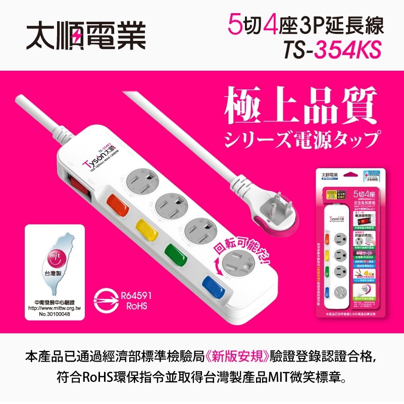 太順電業延長線 354KS 3孔5開4插 延長線插座 1.8M/2.7M/4.5M 扁頭延長線延長線插座-2.7M【TS-354KS】|延長線插座-4.5M【TS-354KS】|延長線插座-1.2M【TS-354KS】|延長線插座-1.8M【TS-354KS】Electric Sockets & Extension Cords太順延長線品牌旗艦館