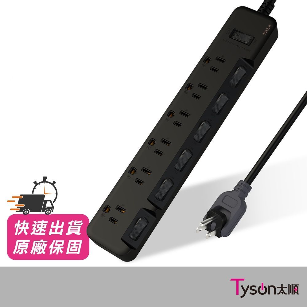 黑傘 3P延長線 7切6座 消光黑 旋轉插頭 斜面式開關 延長線插座 (KU-3766-BK)2.7米(270公分)|4.5米(450公分)|1.2米(120公分)|1.8米(180公分)Electric Sockets & Extension Cords太順延長線品牌旗艦館