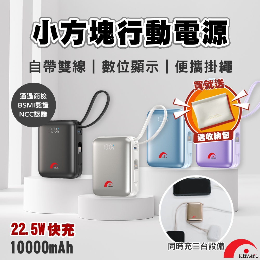 送收納包【JPB】迷你雙線數位顯示行動電源 10000mAh 雙線設計 數位顯示 行動電源 Type-C 蘋果沙漠金|夢幻紫|冰川藍|夜幕黑|極光銀Powerbanks & Batteries日本橋資訊廣場