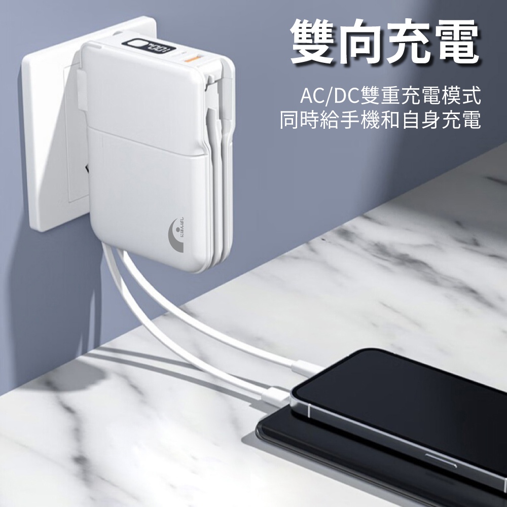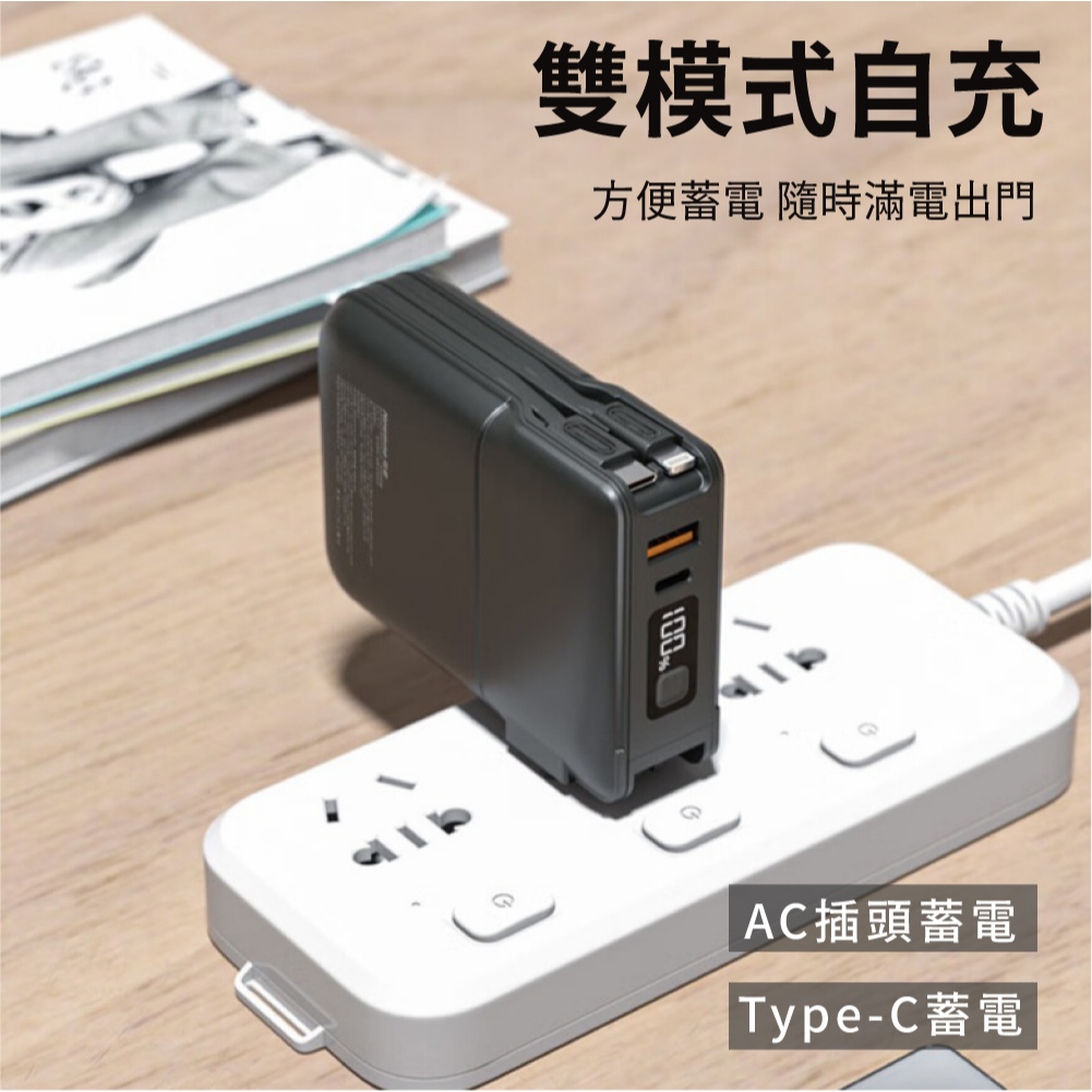【JPB】 多合一自帶雙線/AC充電器行動電源 蘋果/Type-C 10000mAh