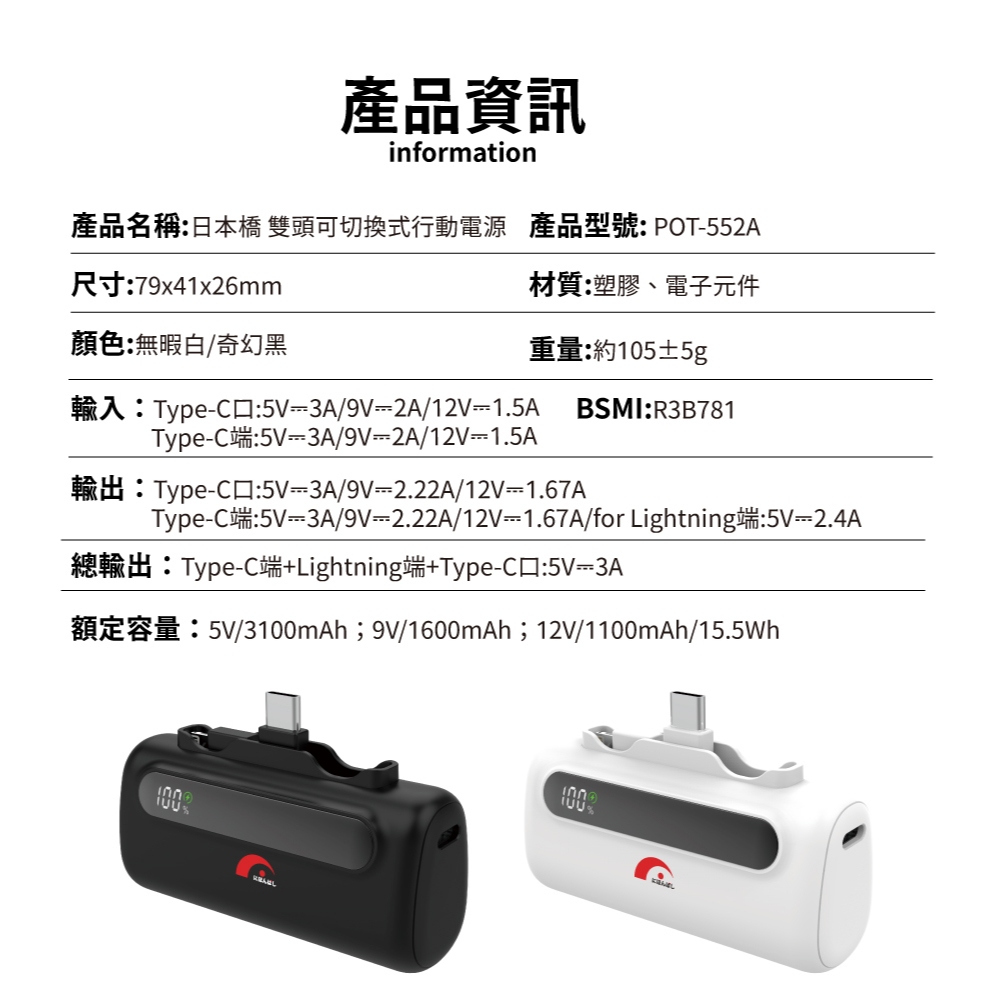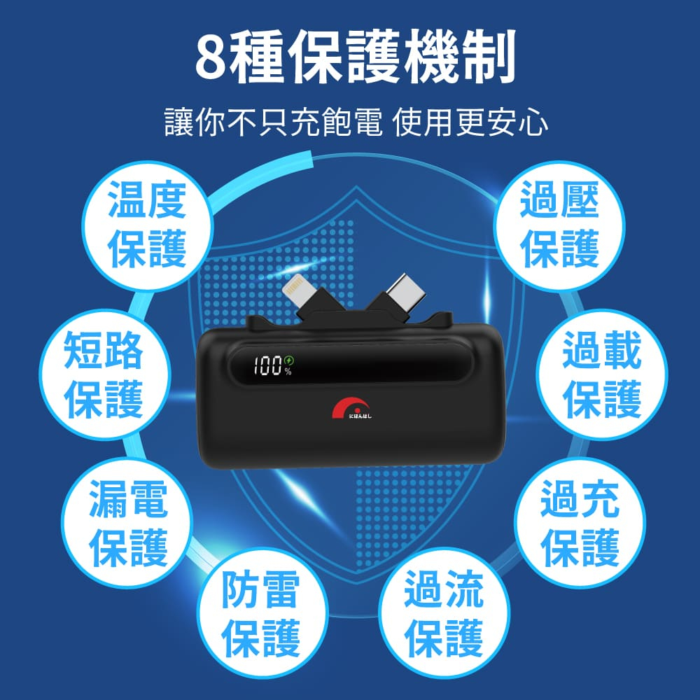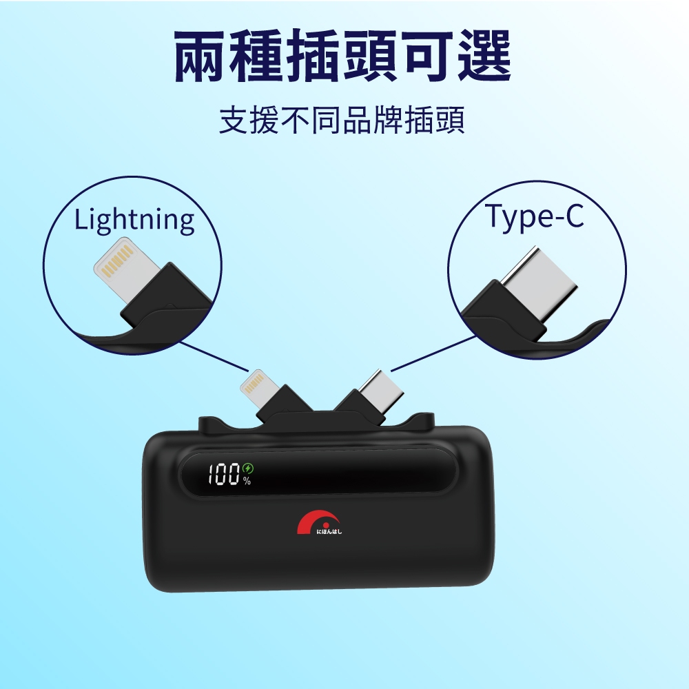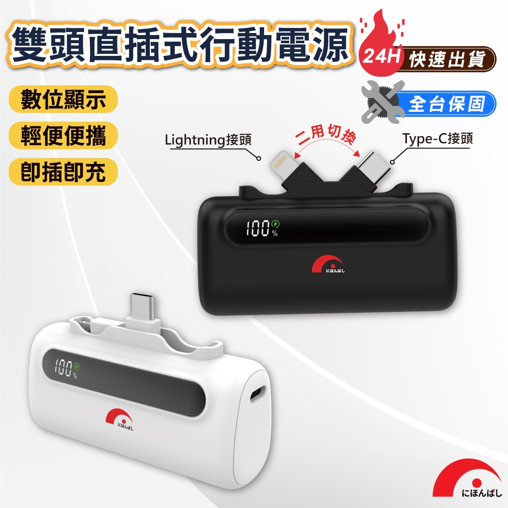 送收納包【JPB】二合一雙頭直插式行動電源5000mAh Type-C Lightning 行動電源 iPhone 安卓無暇白|奇幻黑Powerbanks & Batteries日本橋資訊廣場