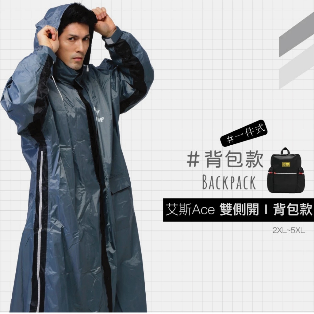 BNN X JUMP 艾斯 ACE 升級版 多色可選 雙側開 專利內斜開風雨衣 背包款 騎士雨衣 一件式雨衣鐵樂灰,2XL:150-160cm|鐵樂灰,3XL:160-170cm|鐵樂灰,4XL:170-185cm|鐵樂灰,5XL(加大尺寸):185cm以上|活力藍,2XL:150-160cm|活力藍,3XL:160-170cm|活力藍,4XL:170-185cm|活力藍,5XL(加大尺寸):185cm以上|湖水綠,2XL:150-160cm|湖水綠,3XL:160-170cm|湖水綠,4XL:170-185cm|湖水綠,5XL(加大尺寸):185cm以上|蜜桃粉(無4XL、5XL),2XL:150-160cm|蜜桃粉(無4XL、5XL),3XL:160-170cm|蜜桃粉(無4XL、5XL),4XL:170-185cm|蜜桃粉(無4XL、5XL),5XL(加大尺寸):185cm以上|泰奶咖(無5XL),2XL:150-160cm|泰奶咖(無5XL),3XL:160-170cm|泰奶咖(無5XL),4XL:170-185cm|泰奶咖(無5XL),5XL(加大尺寸):185cm以上Rain Coats比帽王 騎士用品專賣店