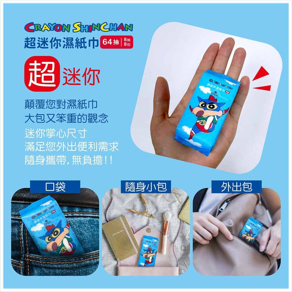 天藍小舖-蠟筆小新超迷你濕紙巾8抽x8包-單1款-A11114423FWipes天藍小舖 SkyBlue