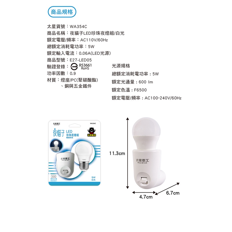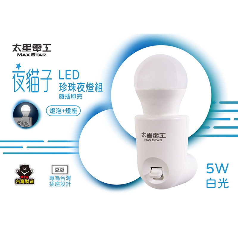 【太星電工】夜貓子LED珍珠夜燈組/5W 白光 WA354C【太星電工】夜貓子LED珍珠夜燈組/5W 白光 WA354C太星旗艦店