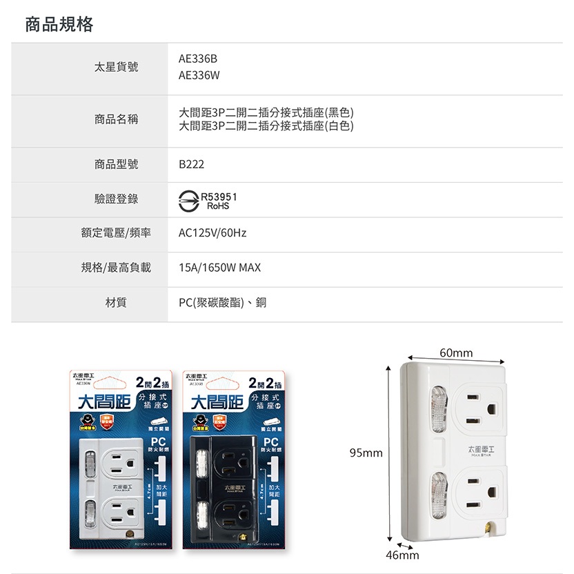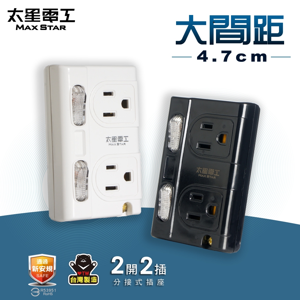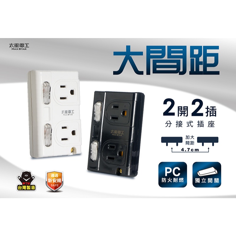 【太星電工】大間距3P二開二插分接式插座(黑色/白色) AE336B/AE336W黑色|白色Electric Sockets & Extension Cords太星旗艦店