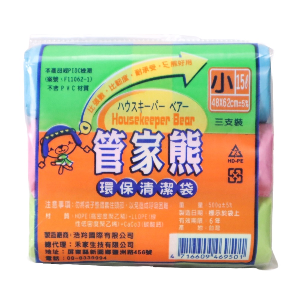 管家熊環保清潔袋3入(小)-0.5KG【小北百貨】管家熊環保清潔袋3入(小)-0.5KG【小北百貨】Plastic Bags & Trash Bags小北百貨 SHOWBA