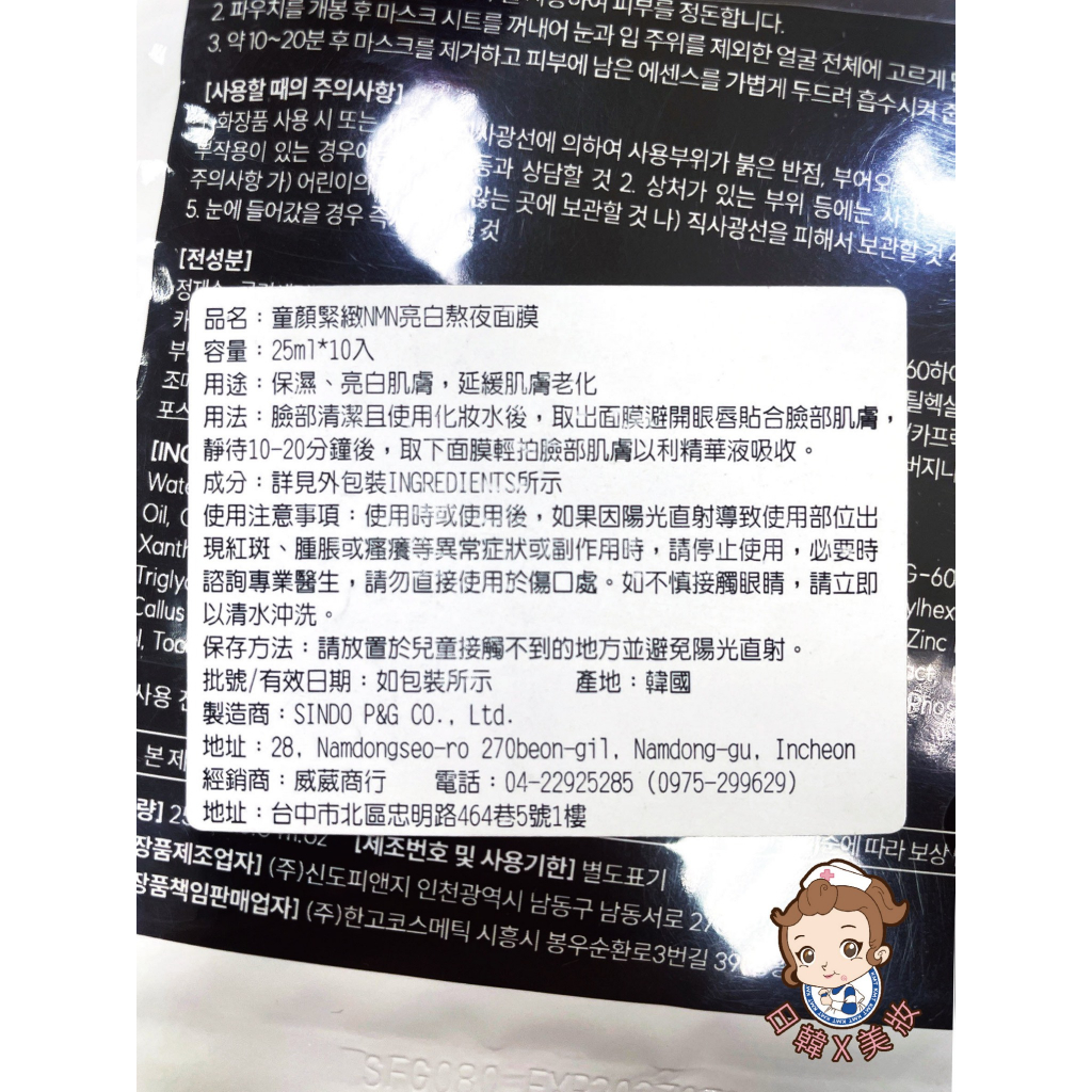 韓國醫美品牌 J-iromise NMN 亮白緊緻熬夜面膜 25ml*10入