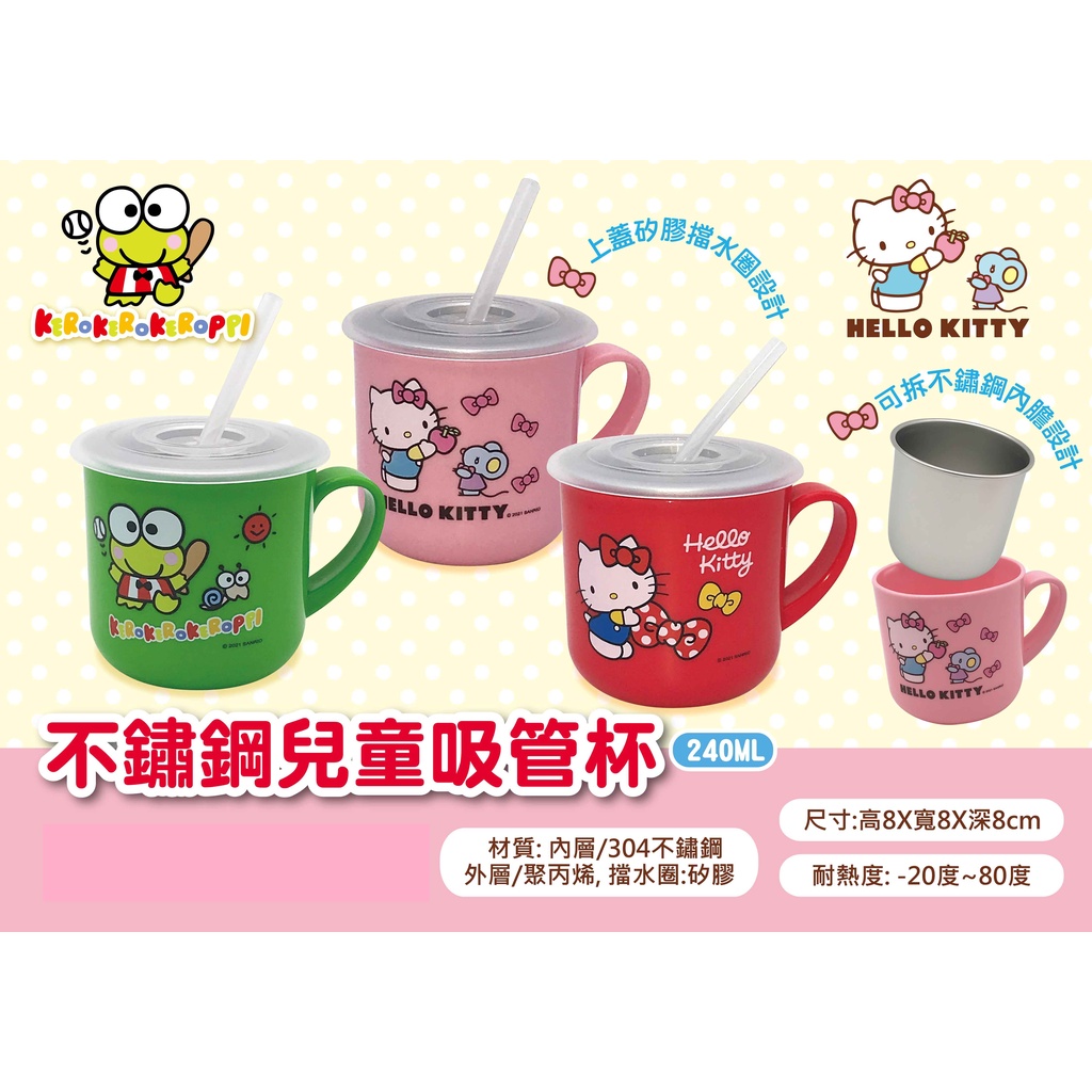 三麗鷗不鏽鋼兒童吸管杯240ml-Hello Kitty/大眼蛙【台灣正版現貨】大眼蛙|Hello Kitty-粉|Hello Kitty-紅Utensils小朋友上學趣