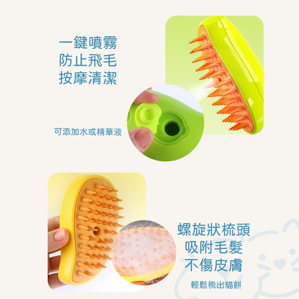【小小毛孩】寵物噴霧按摩梳 輕鬆除浮毛 寵物噴霧梳 寵物梳 貓咪梳子 貓梳子 寵物按摩梳 寵物梳毛 貓咪噴霧梳黃色|綠色Hair Care小小毛孩 Litte poppet