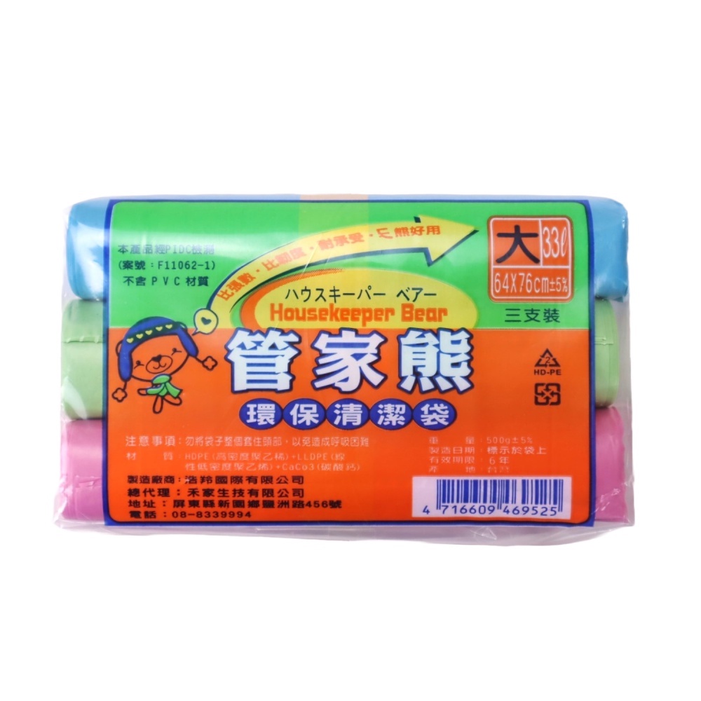 管家熊環保清潔袋3入(大)-0.5KG【小北百貨】管家熊環保清潔袋3入(大)-0.5KG【小北百貨】Plastic Bags & Trash Bags小北百貨 SHOWBA