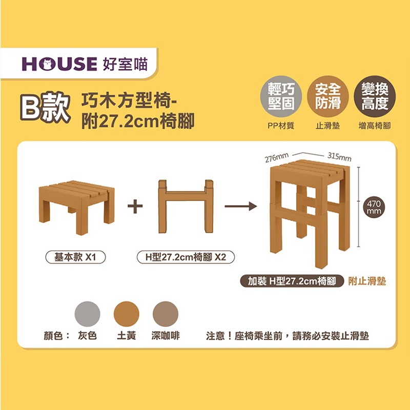 好事喵 巧木方型椅 兩種高度可調 組合座椅 可拆座椅 兩段式座椅 椅子 塑膠椅 CH00136深咖啡 (超取/店到店限購1個|灰色 (超取/店到店限購1個|土黃 (超取/店到店限購1個Benches, Chairs & Stools中聯興家庭五金批發